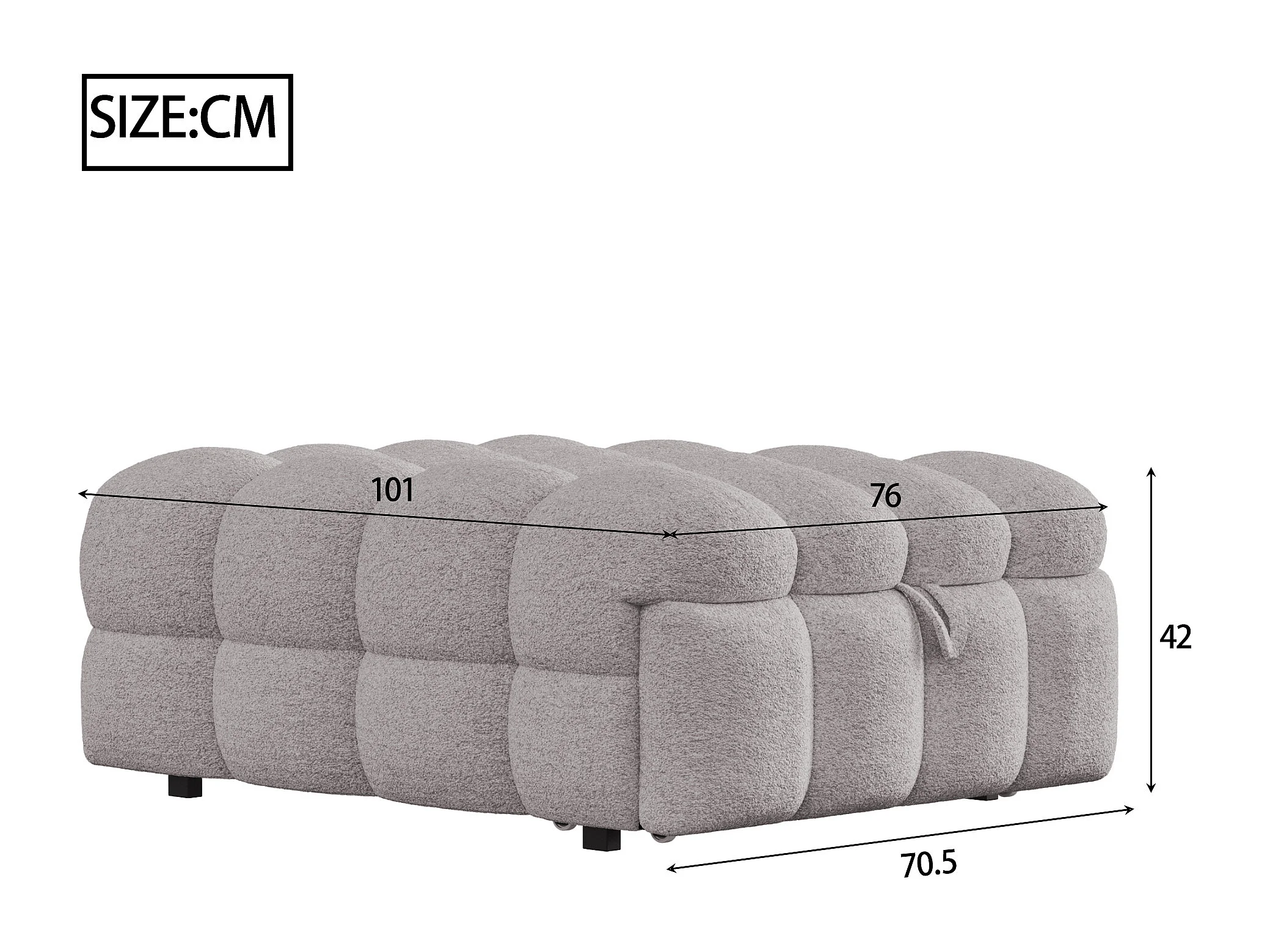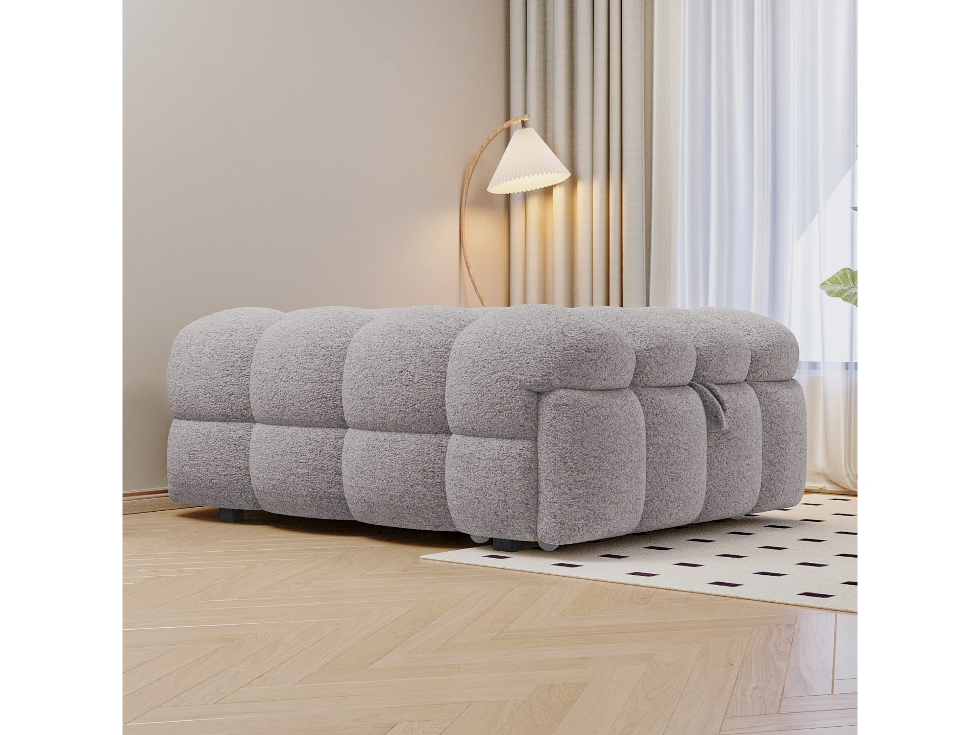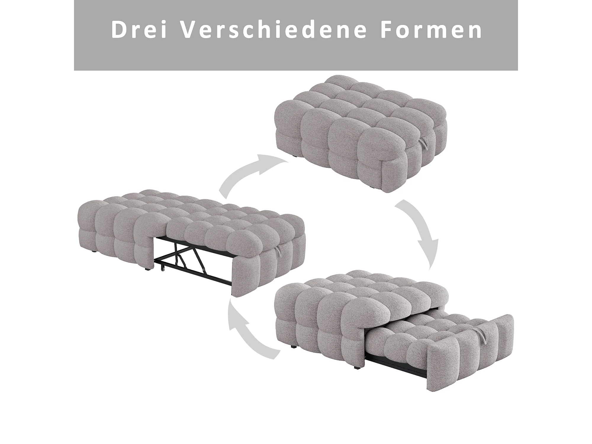 Lit pouf 2-en-1, canapé-lit extensible, tissu teddy, gris (183x76x72 cm)