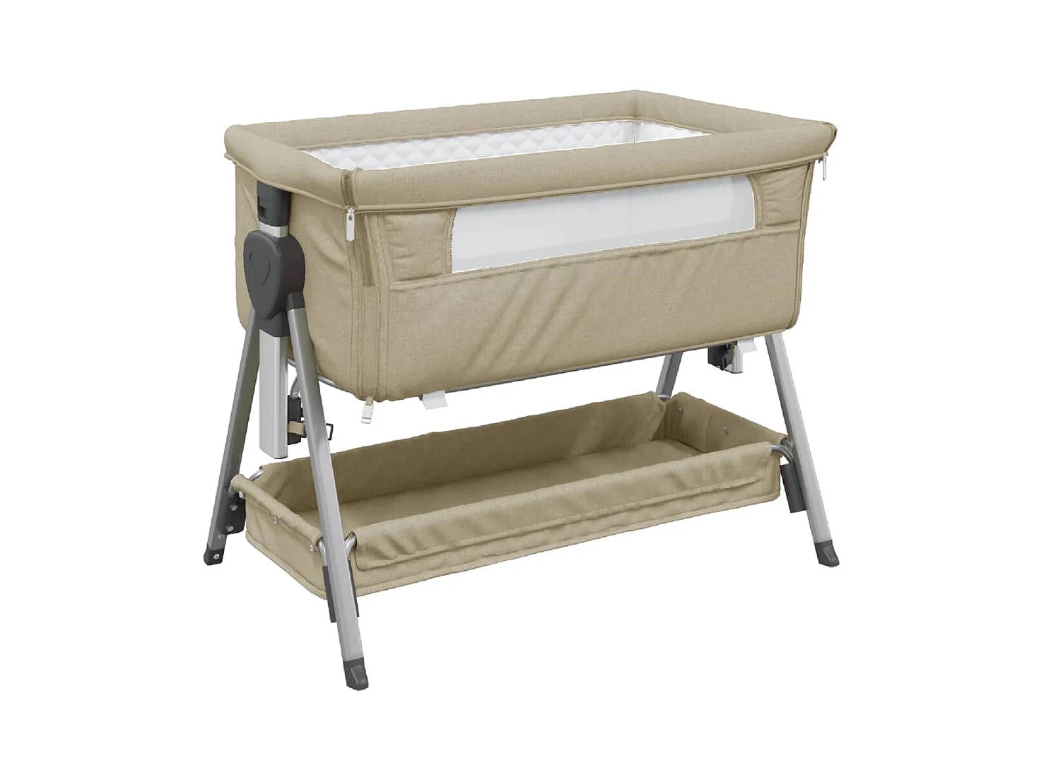 Lit pour bébé avec matelas Taupe Tissu de lin