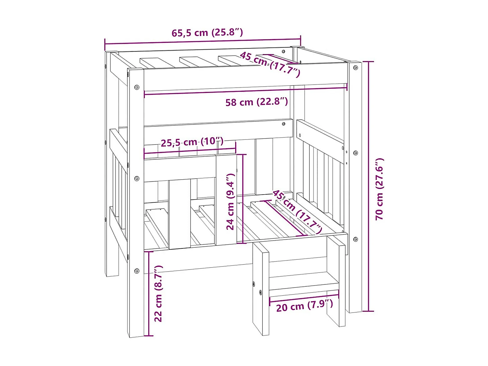 Lit pour chien 65,5x50,5x70 cm Bois de pin solide