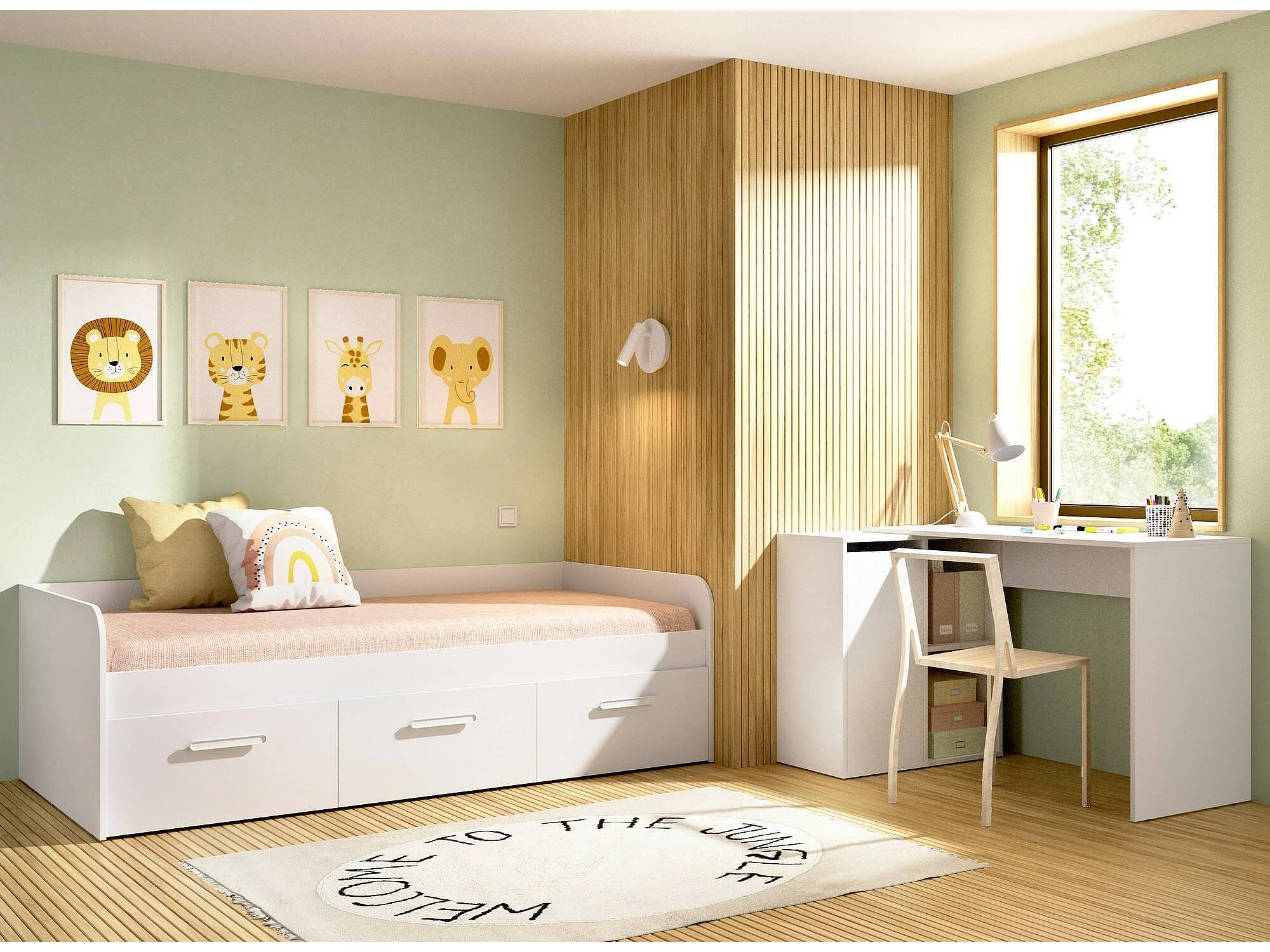 Lit enfant Adamello, Lit coffre pour chambres, Cadre de lit simple avec 3 tiroirs, 194x97h60 cm, Blanc