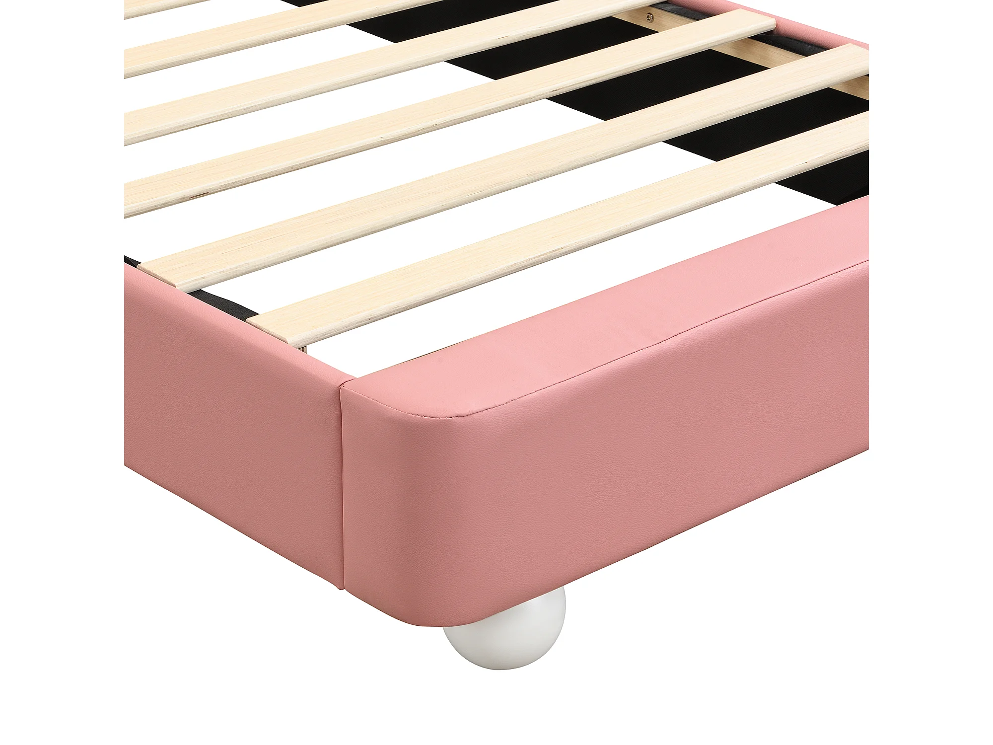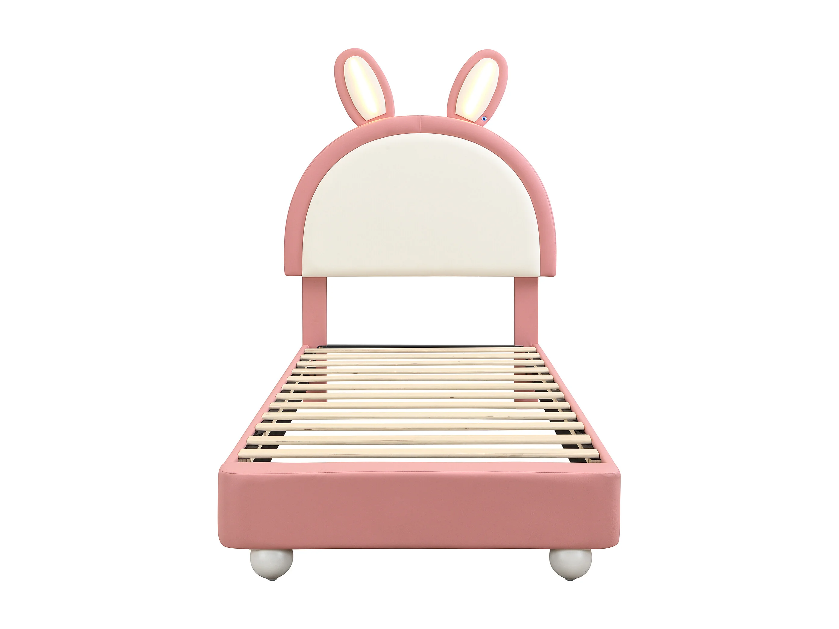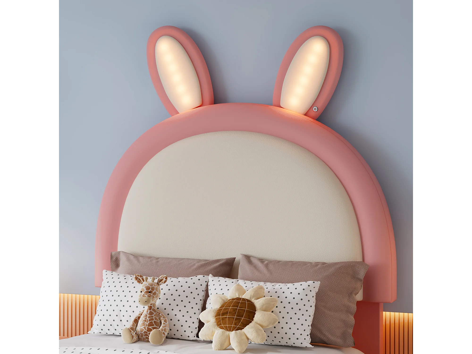 Lit pour enfant rembourré 90x200 cm - tête de lit en forme de lapin - avec lumière LED - PU + contreplaqué - Rose (sans matelas)