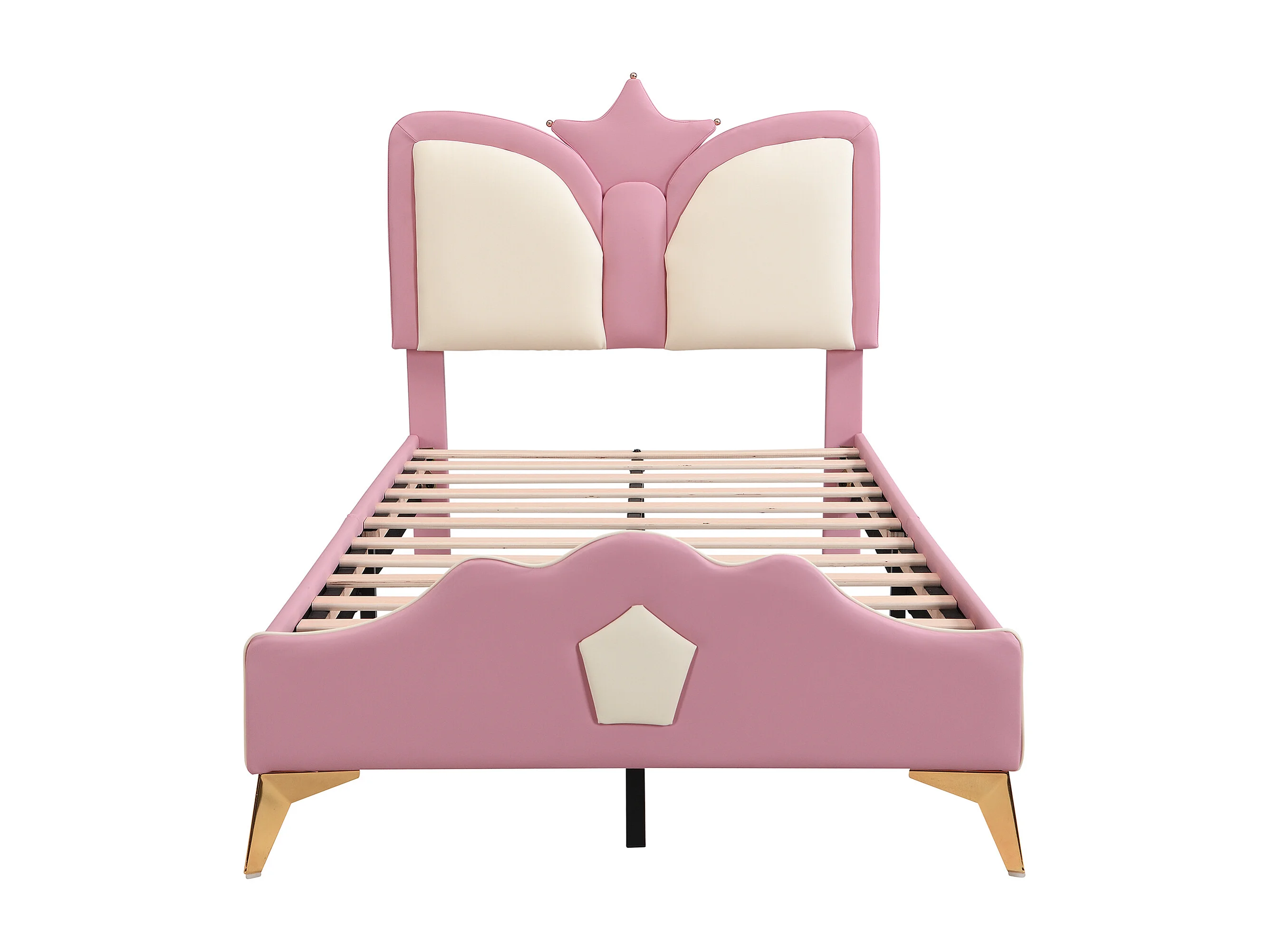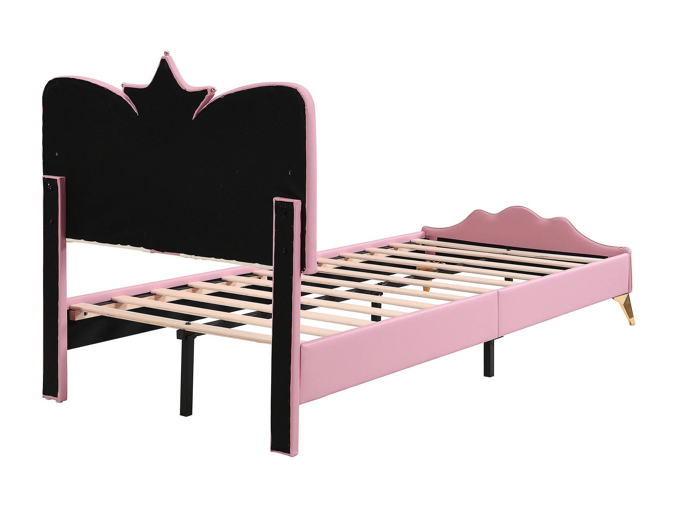 Lit princesse 90x200cm avec tête de lit en forme de couronne - Lit enfant en similicuir PU - Rose et blanc