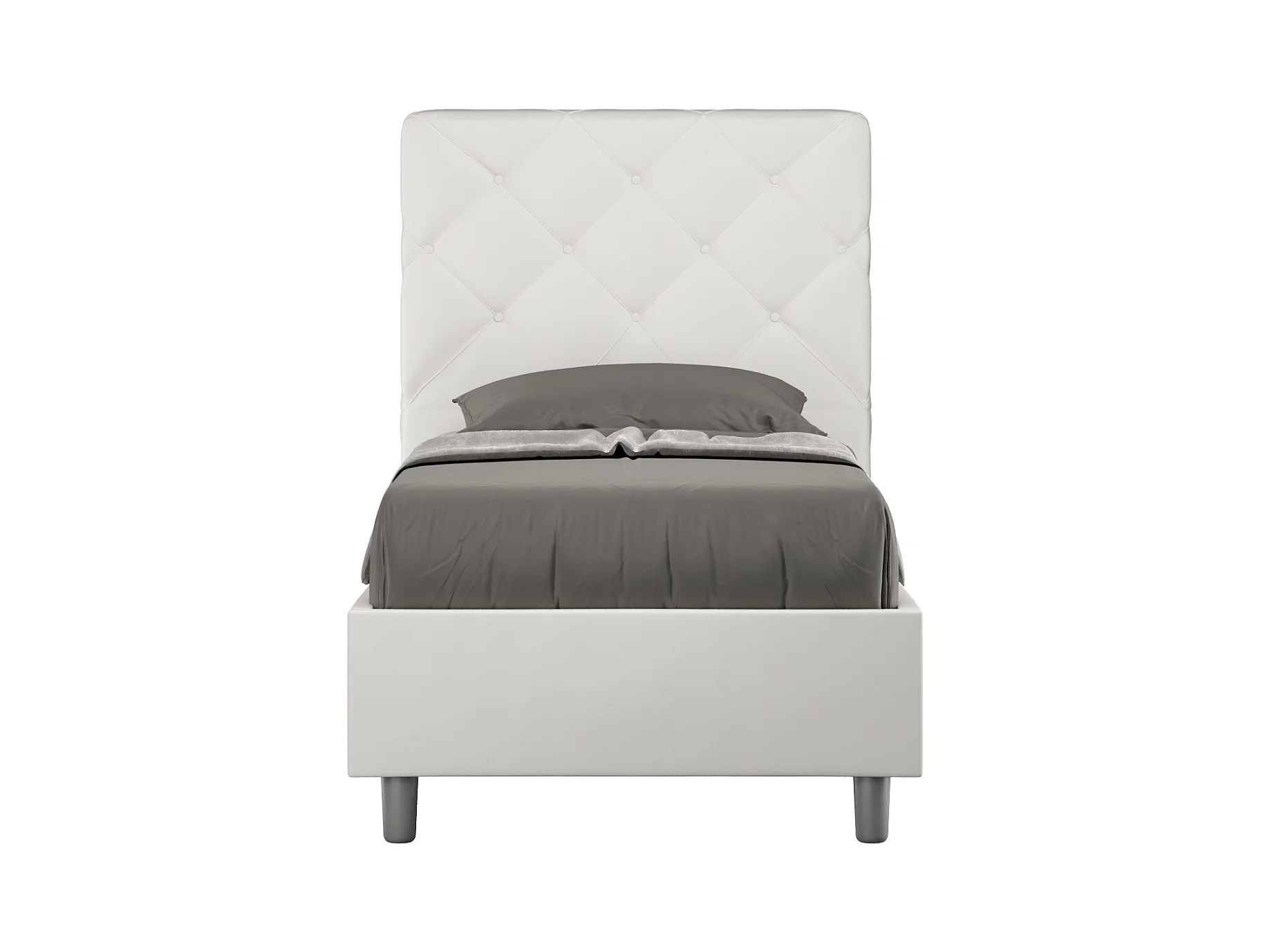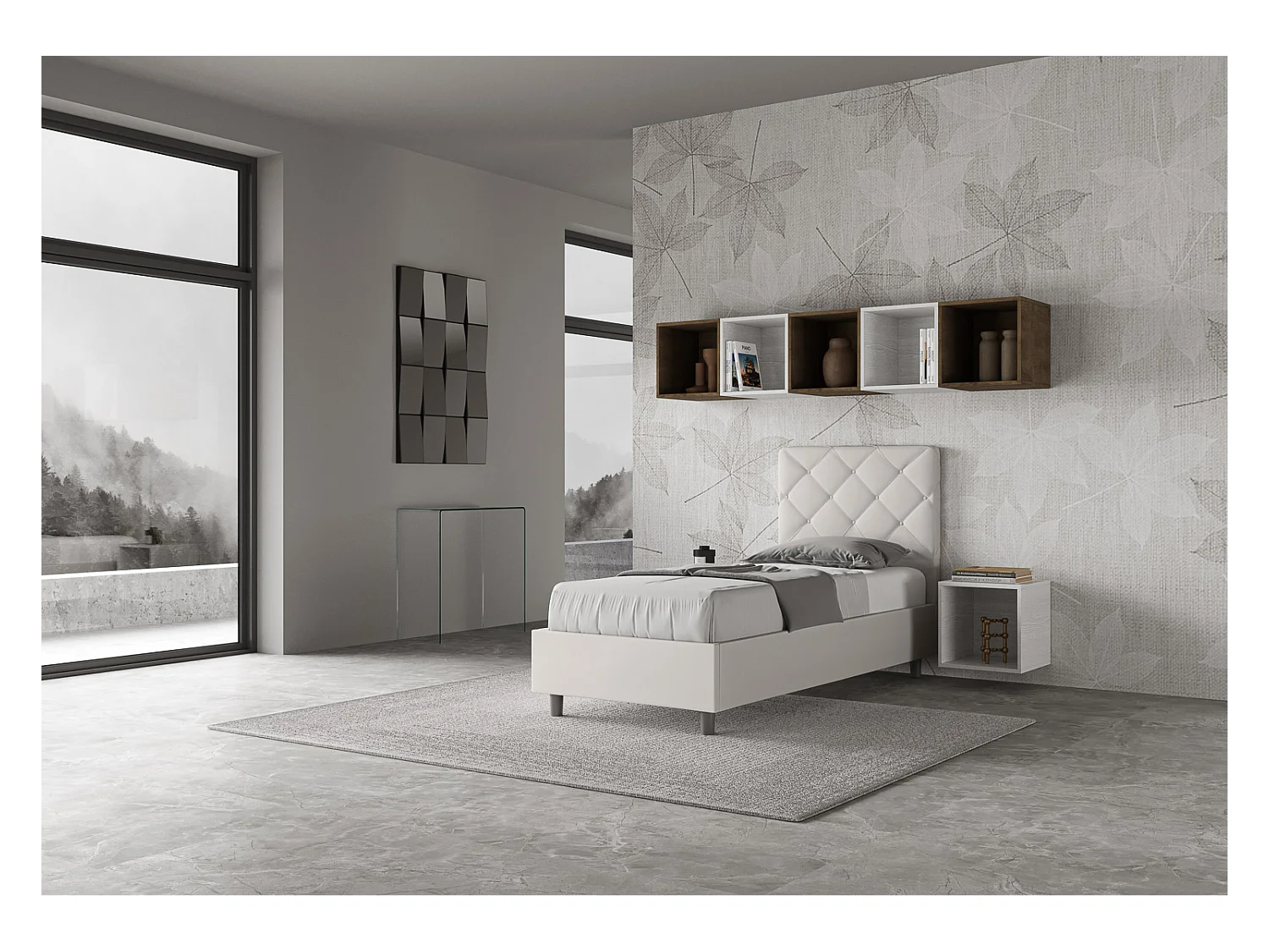 Lit Priya en simili cuir blanc avec sommier tapissé 80x210