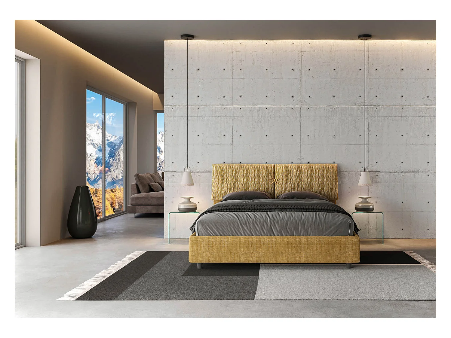 Lit avec sommier rembourrée 160x190 tissu Aragona 3 jaune Mados