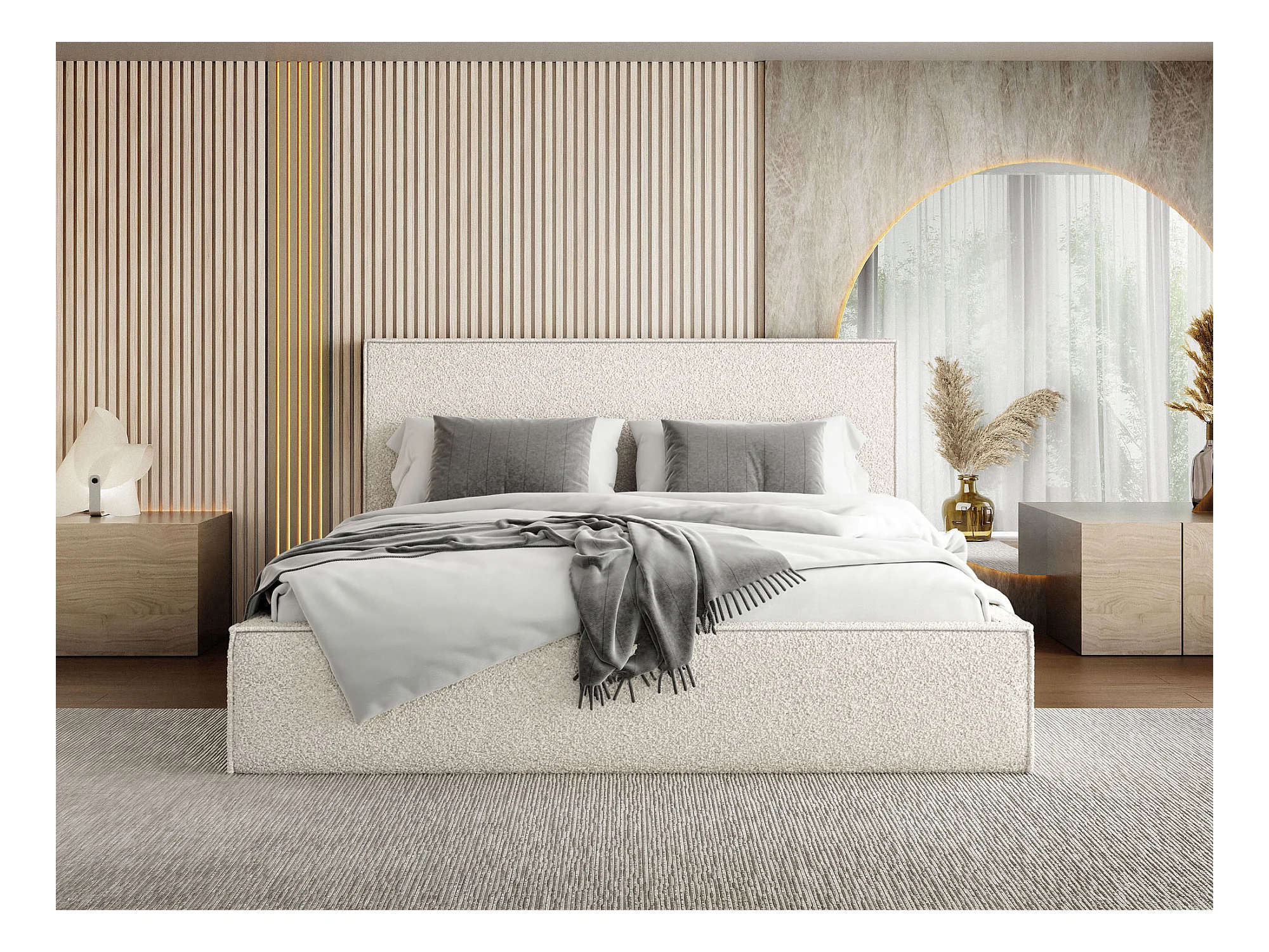 Lit Rembourré 120x200 Design Bohème - Lit Coffre Rangement - Lit Capitonné en Tissu Bouclette Blanc - Lit Double Tête de Lit - Cadre de Lit - Terra - Crème