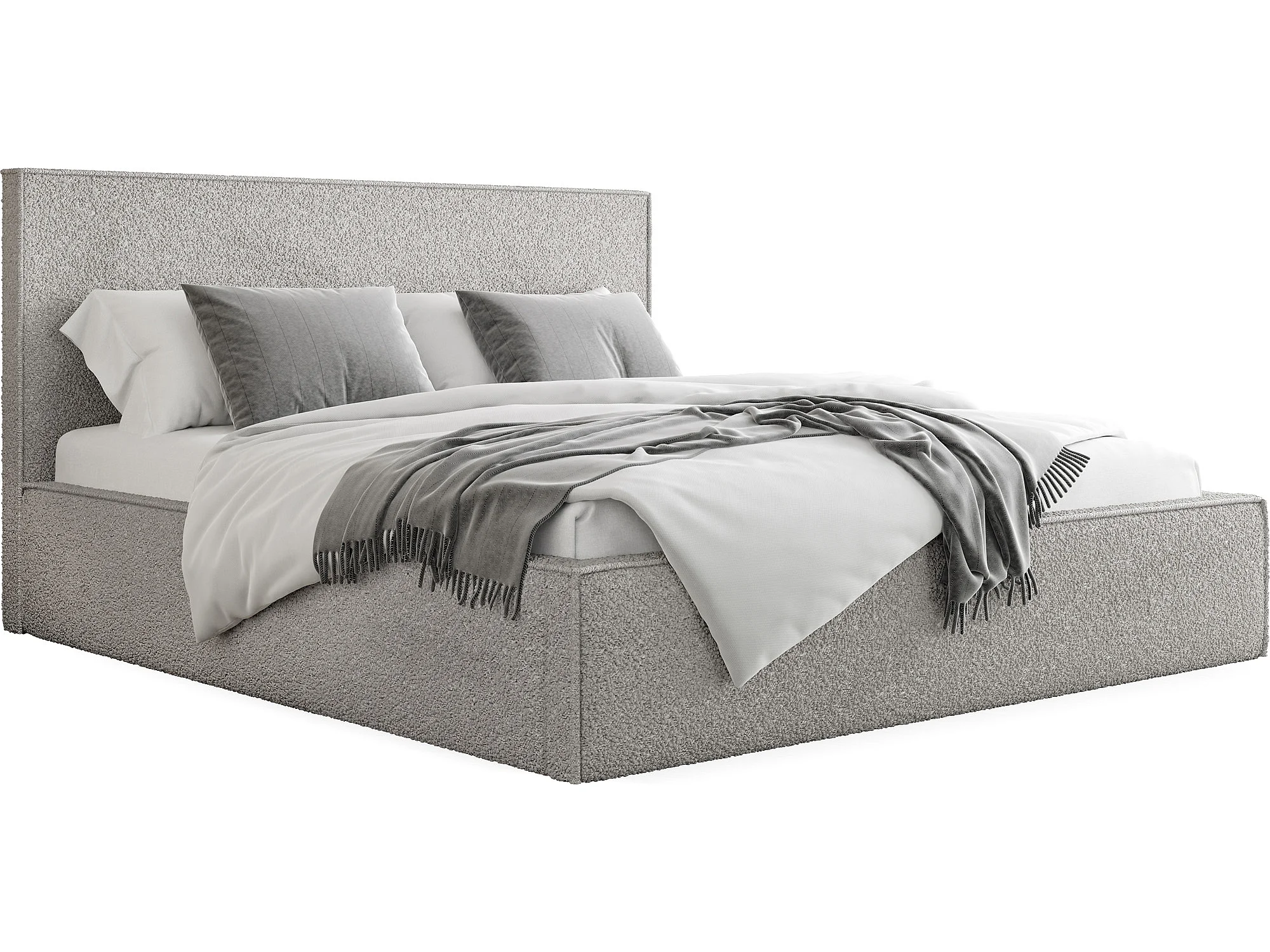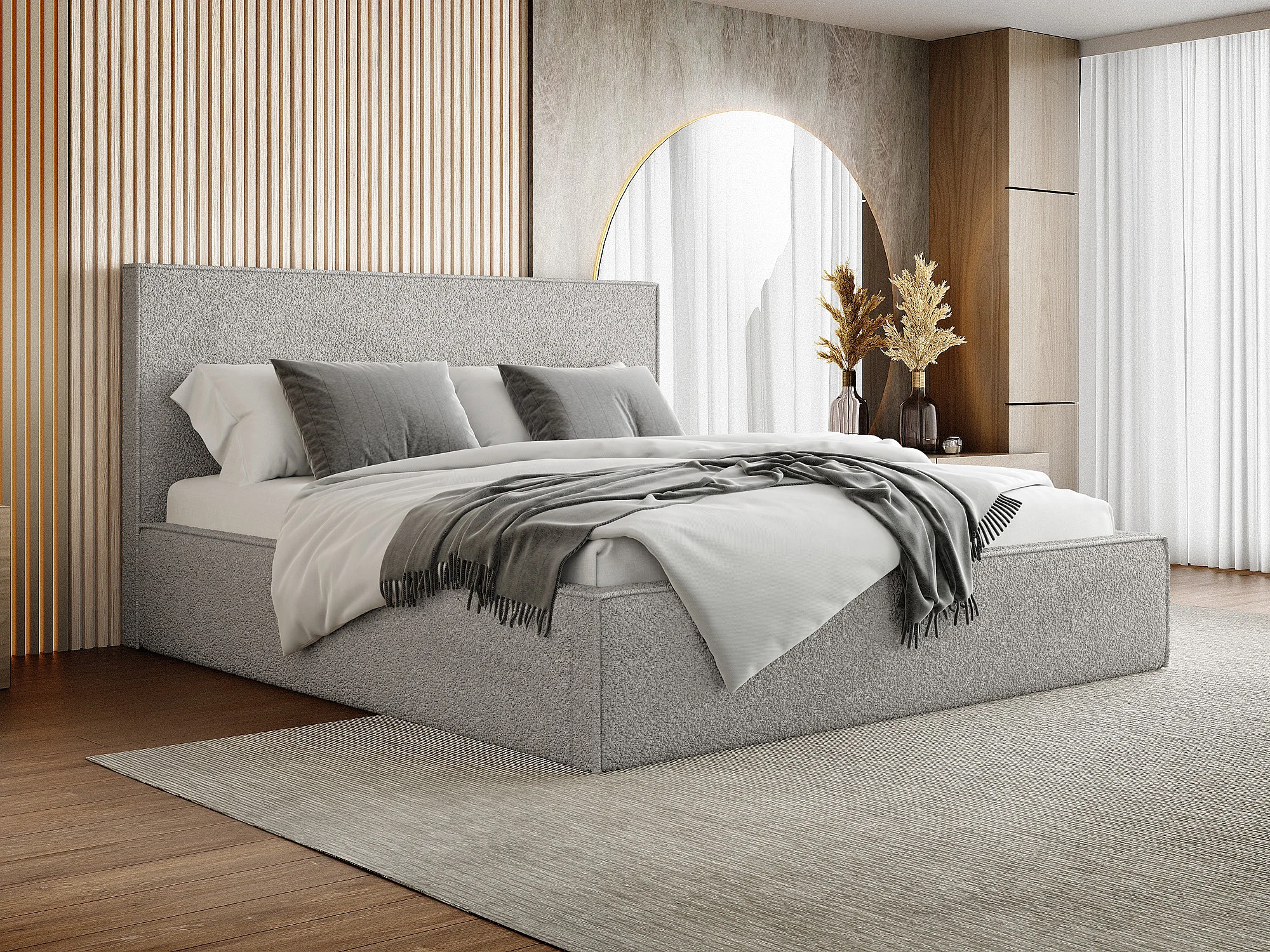 Lit Rembourré 120x200 Design Bohème - Lit Coffre Rangement - Lit Capitonné en Tissu Bouclette Gris - Lit Double Tête de Lit - Cadre de Lit - Terra