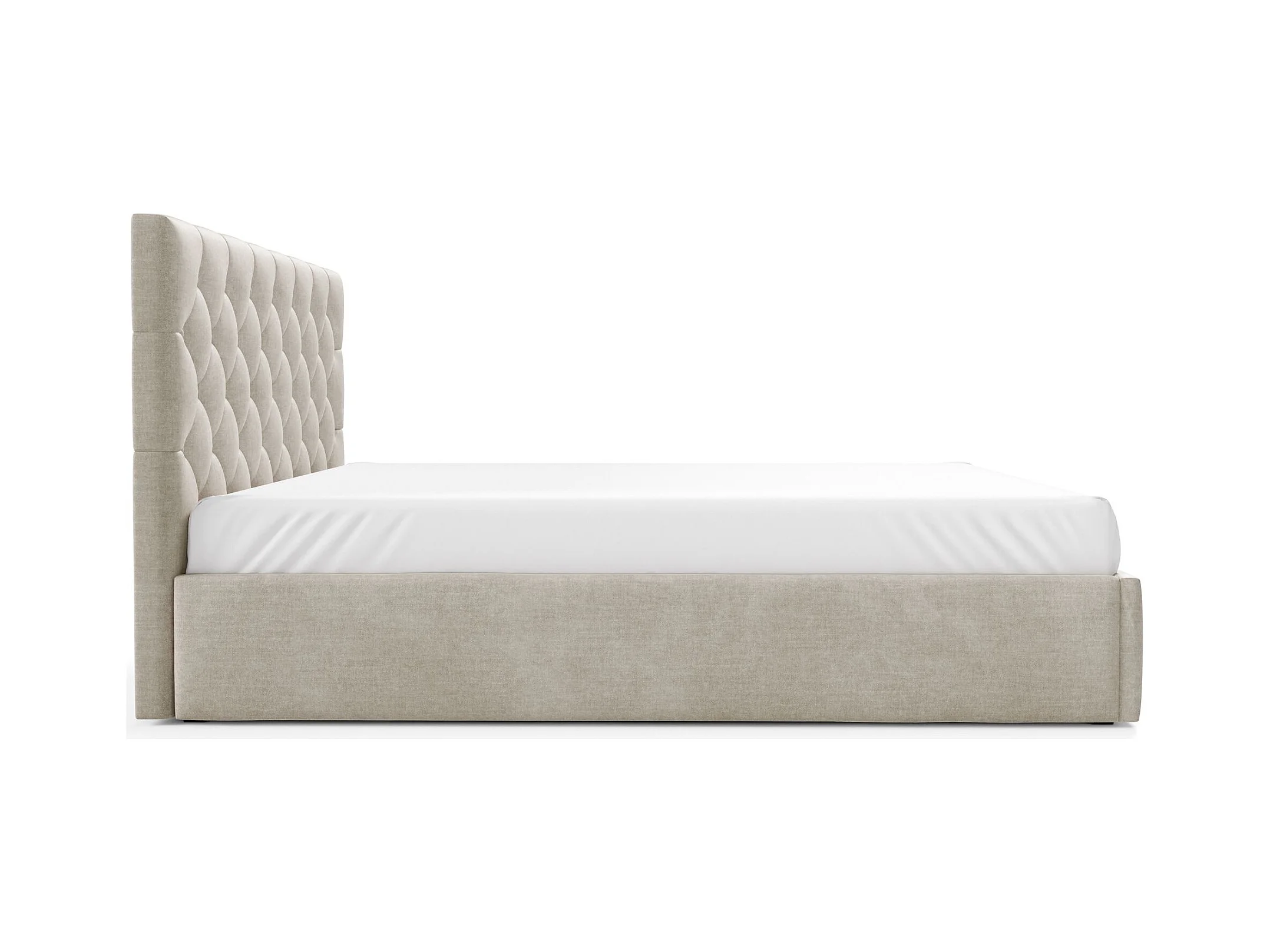 Lit rembourré 160x200 cm - avec coffre - en velours beige clair - AUREVIA