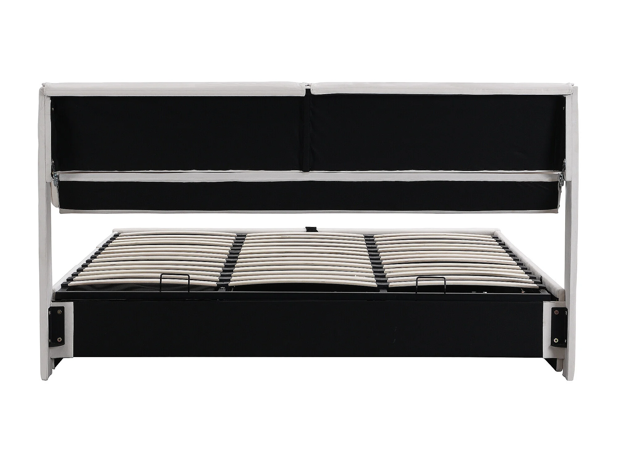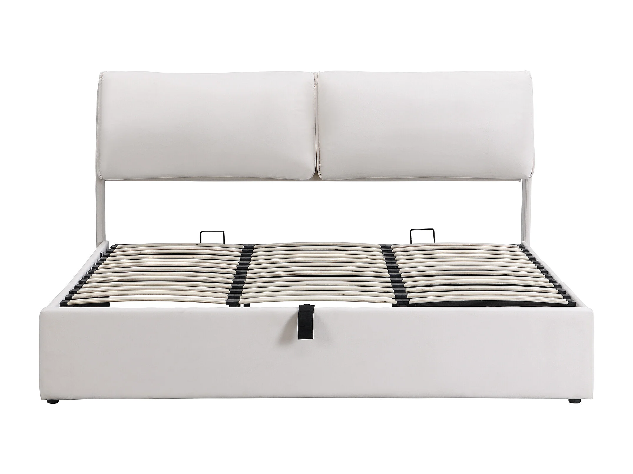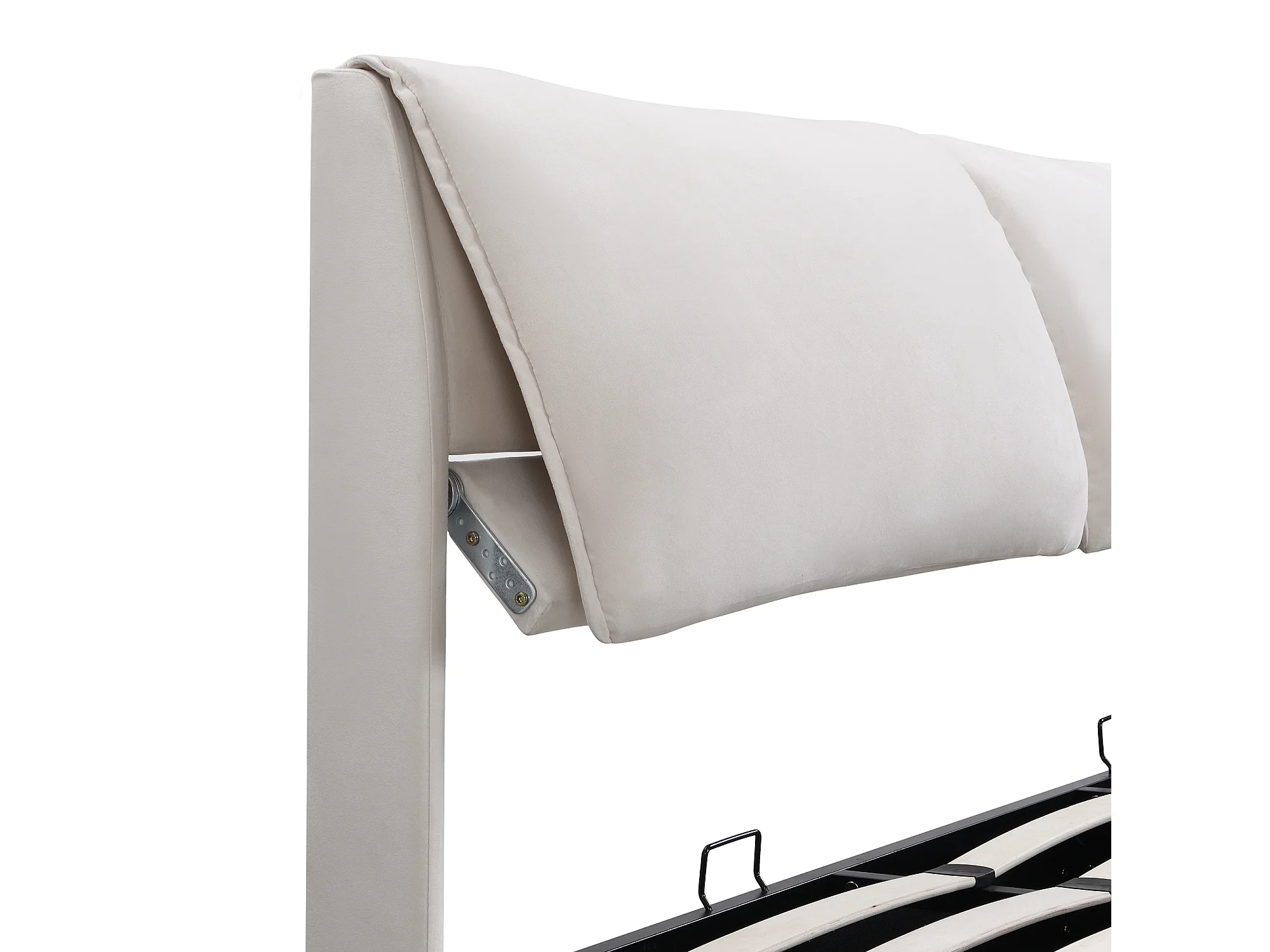 Lit rembourré, 180 * 200, lit hydraulique, trois tiroirs, boîte de rangement, sommier à lattes avec tête de lit, sans matelas, velours, beige