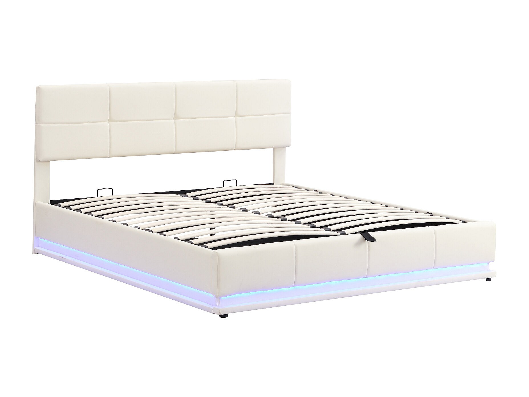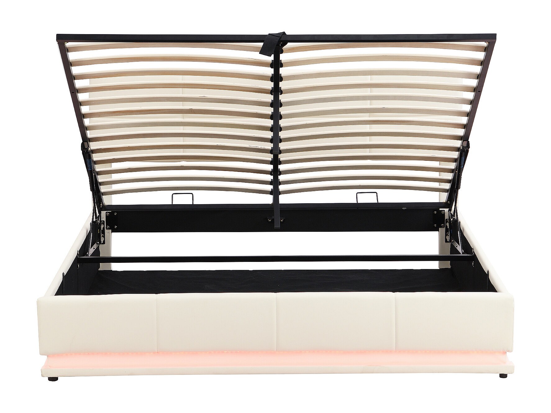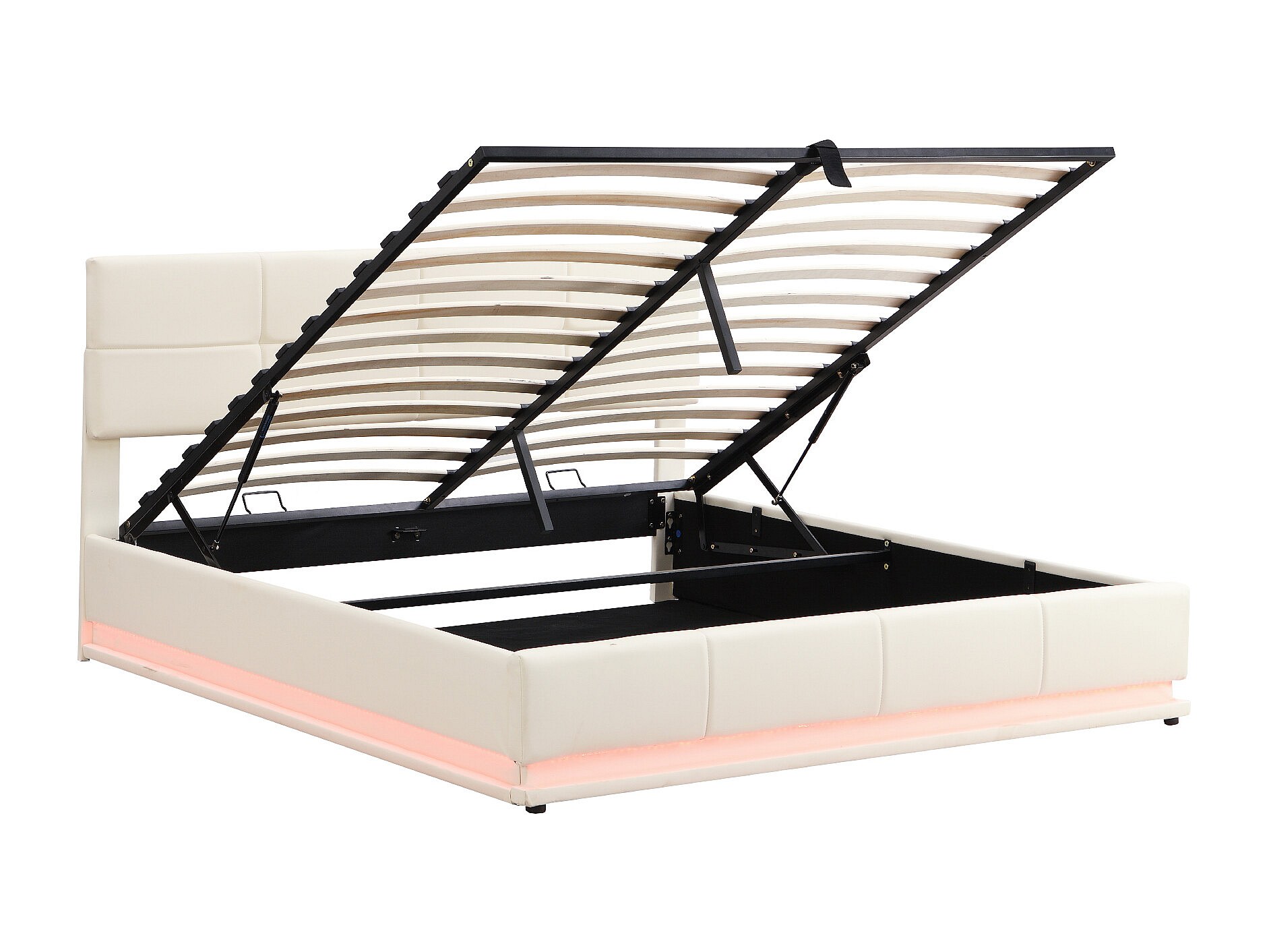 Lit rembourré 180x200 cm avec éclairage LED et espace de rangement hydraulique, beige