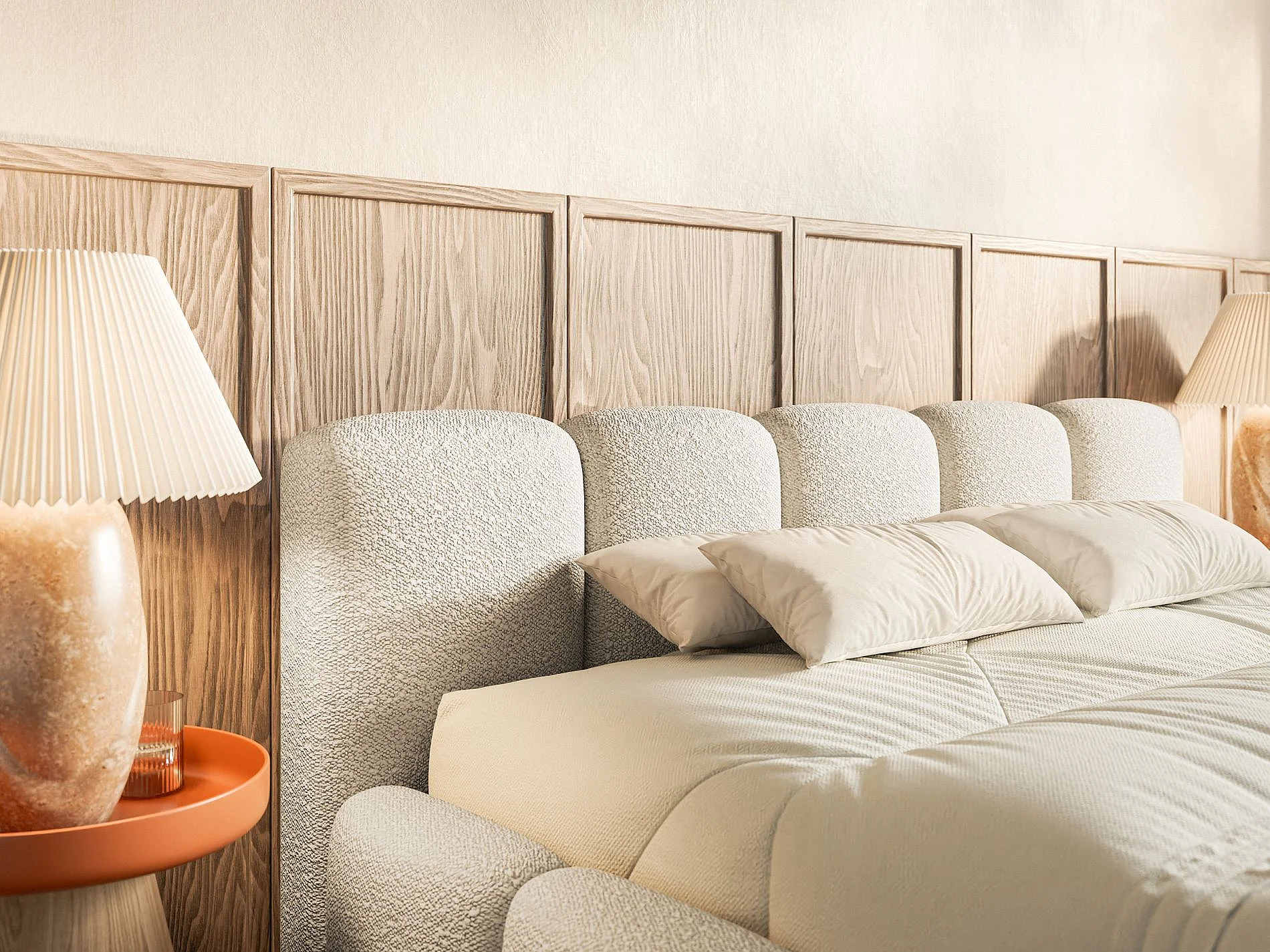 Lit rembourré 180x200 cm - beige clair- Cloudy Low