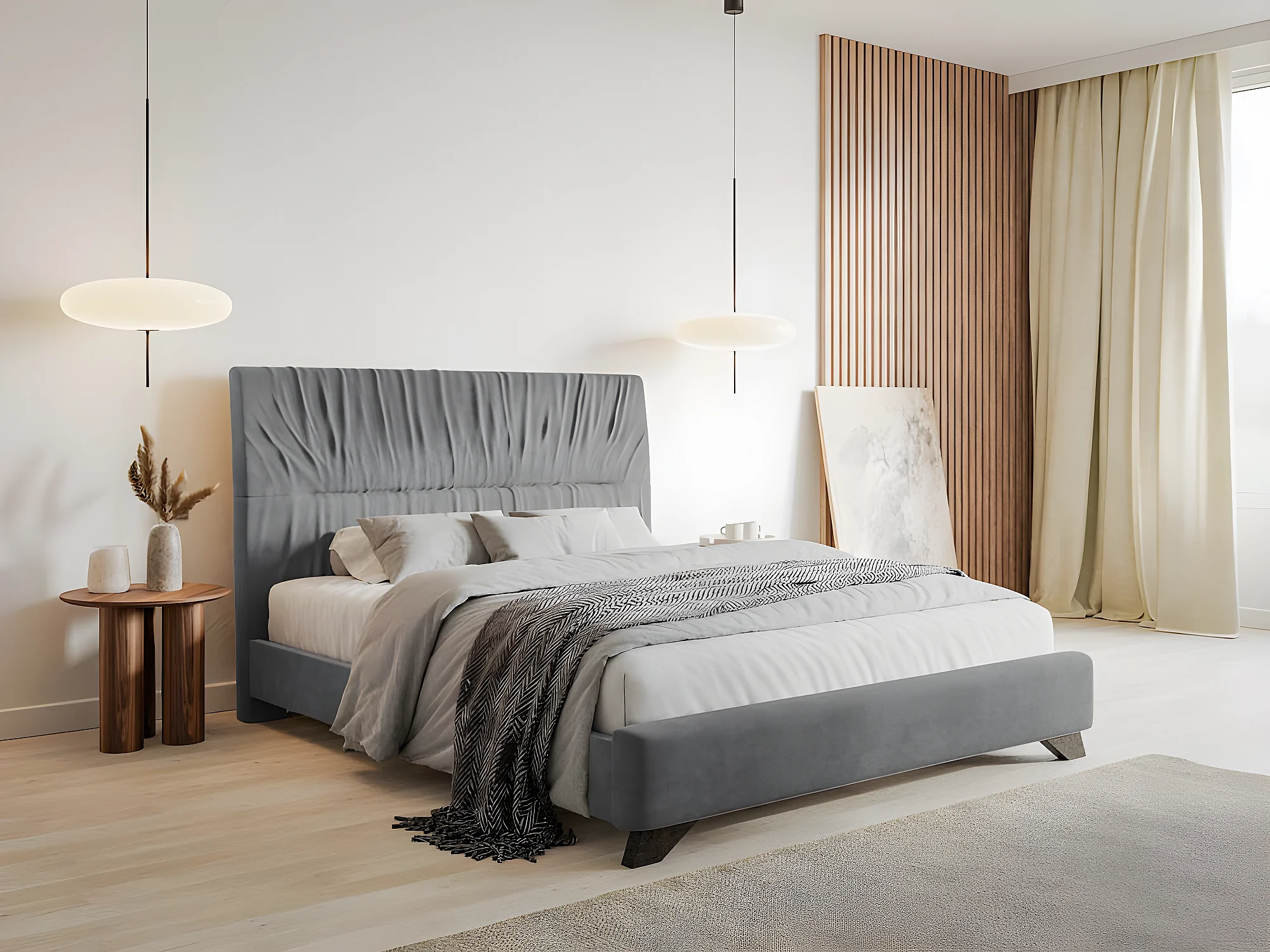 Lit rembourré - 180x200 cm - velours gris - LLANA