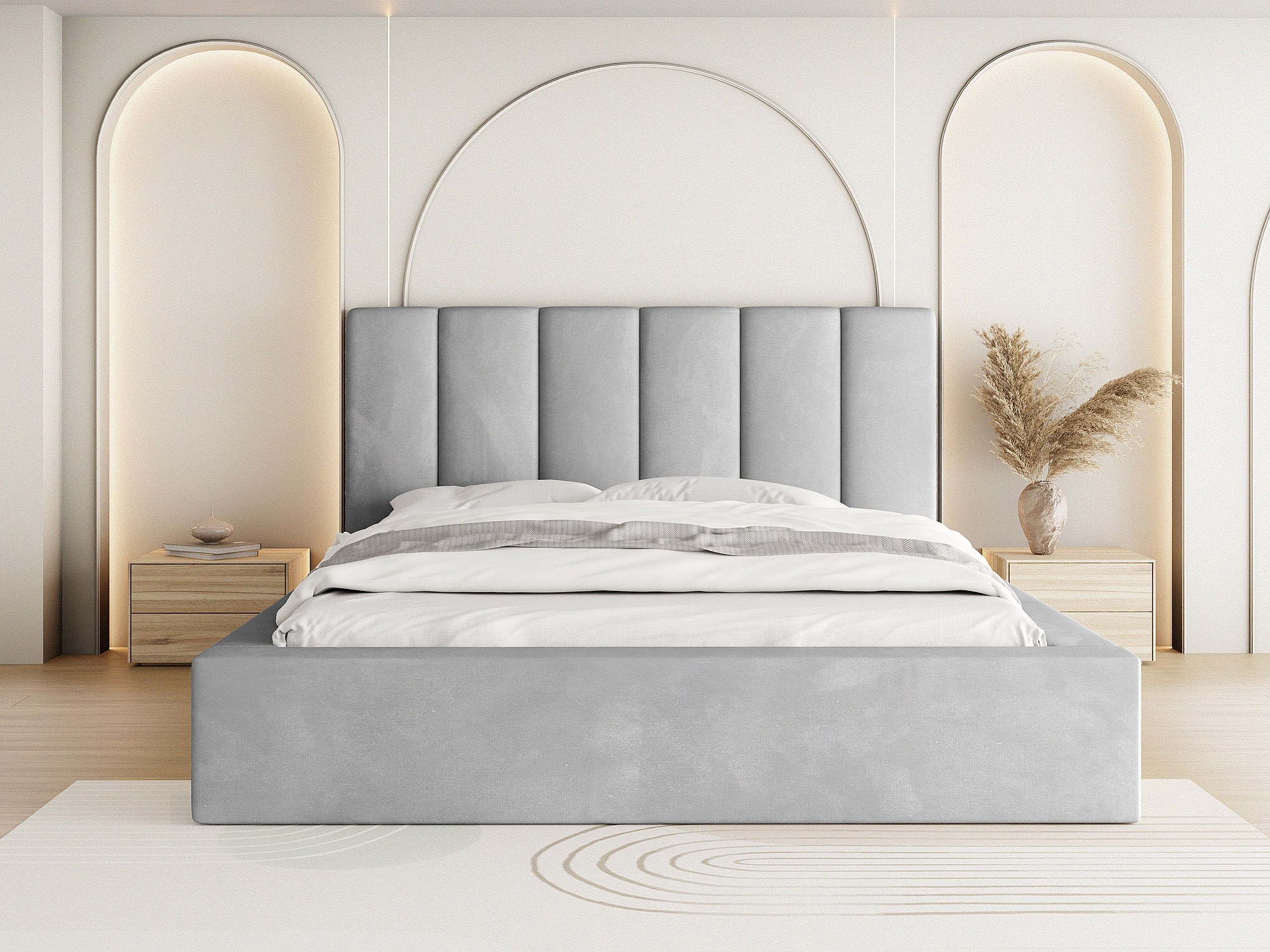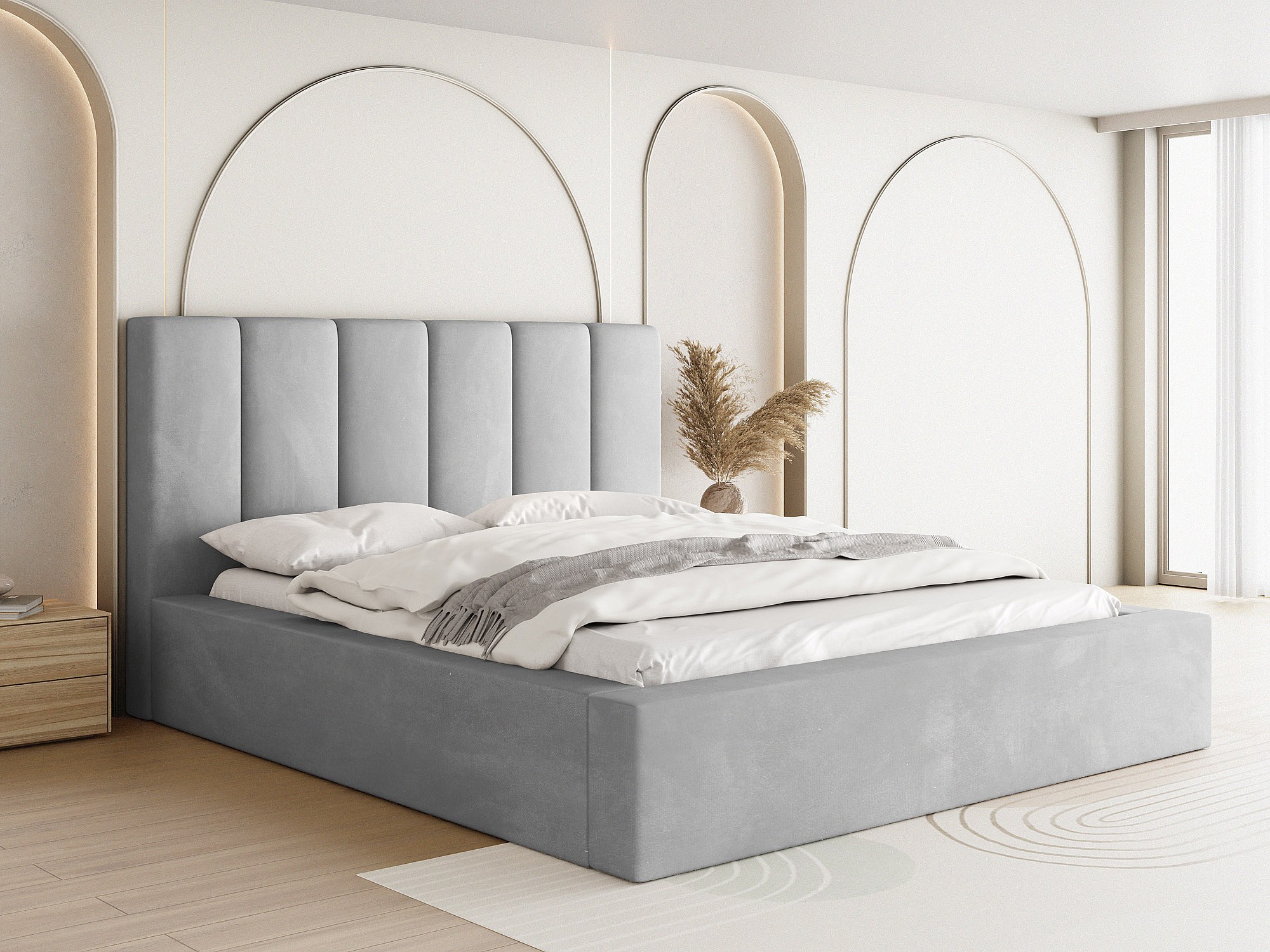 Lit Rembourré 180x200 - Lit Coffre en Tissu Velours - Rangement - Cadre avec Sommier à Lattes - Tête Capitonnée - Amira - Lit Adulte Moderne - Gris