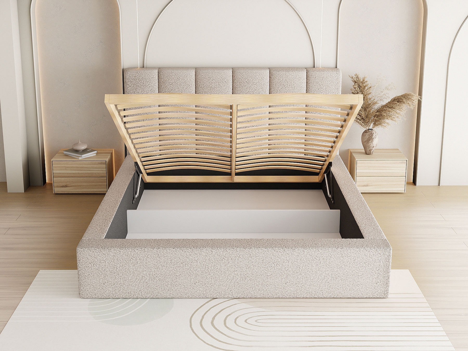 Coffre de lit intégré – pratique pour ranger couettes, oreillers ou linge de maison