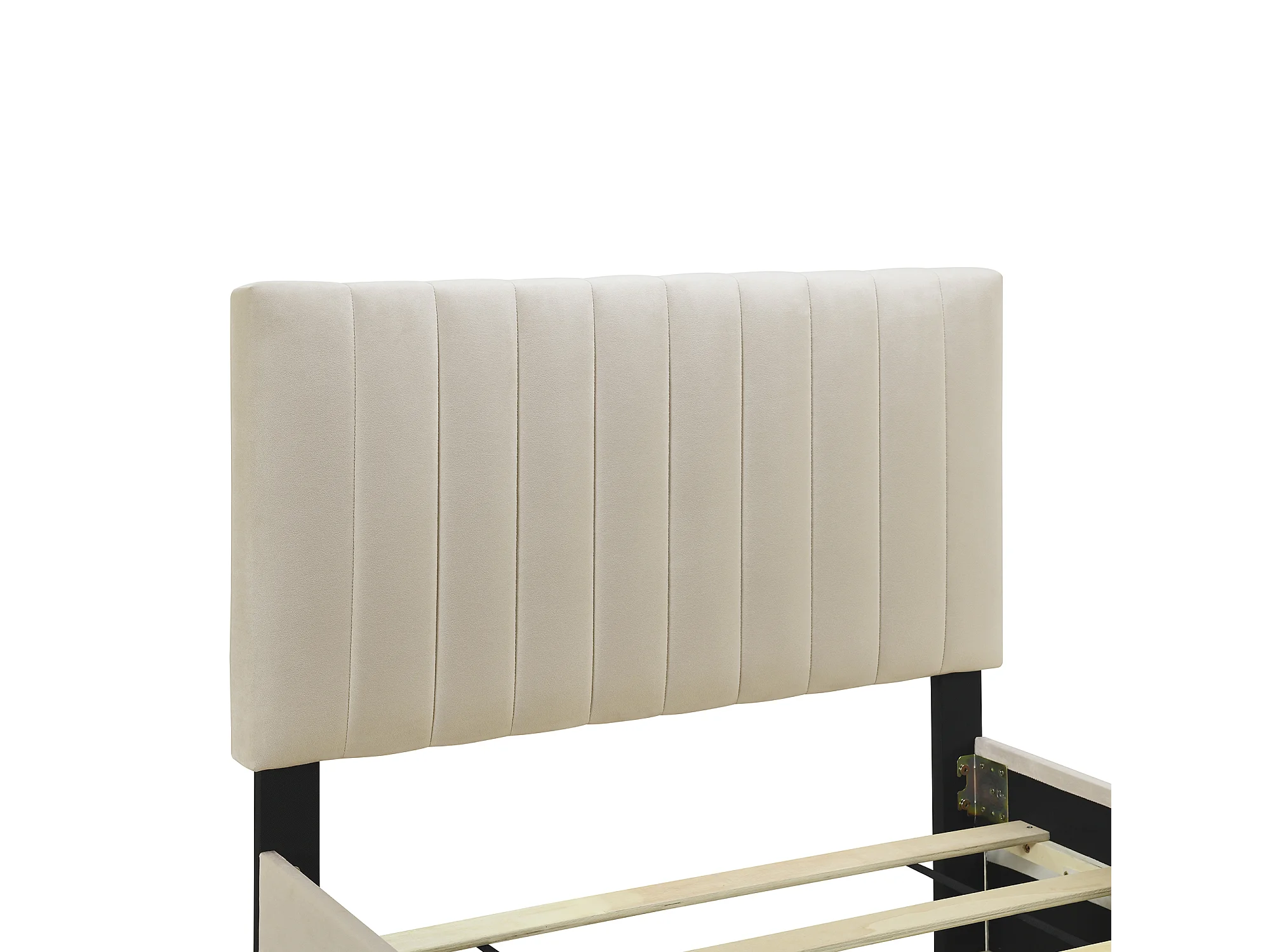 Lit rembourré 90x190cm en velours - avec lit gigogne 90x190cm - Beige