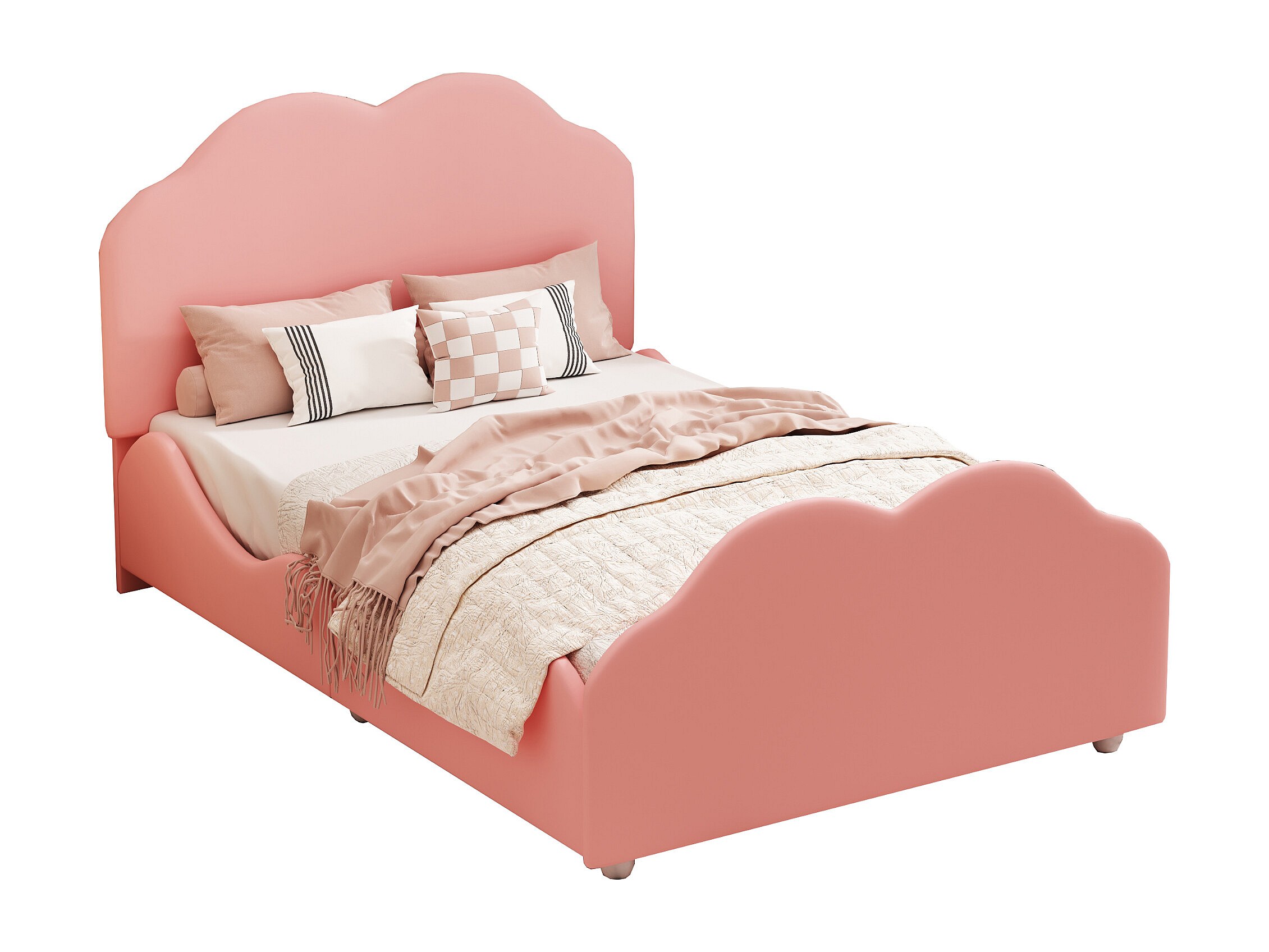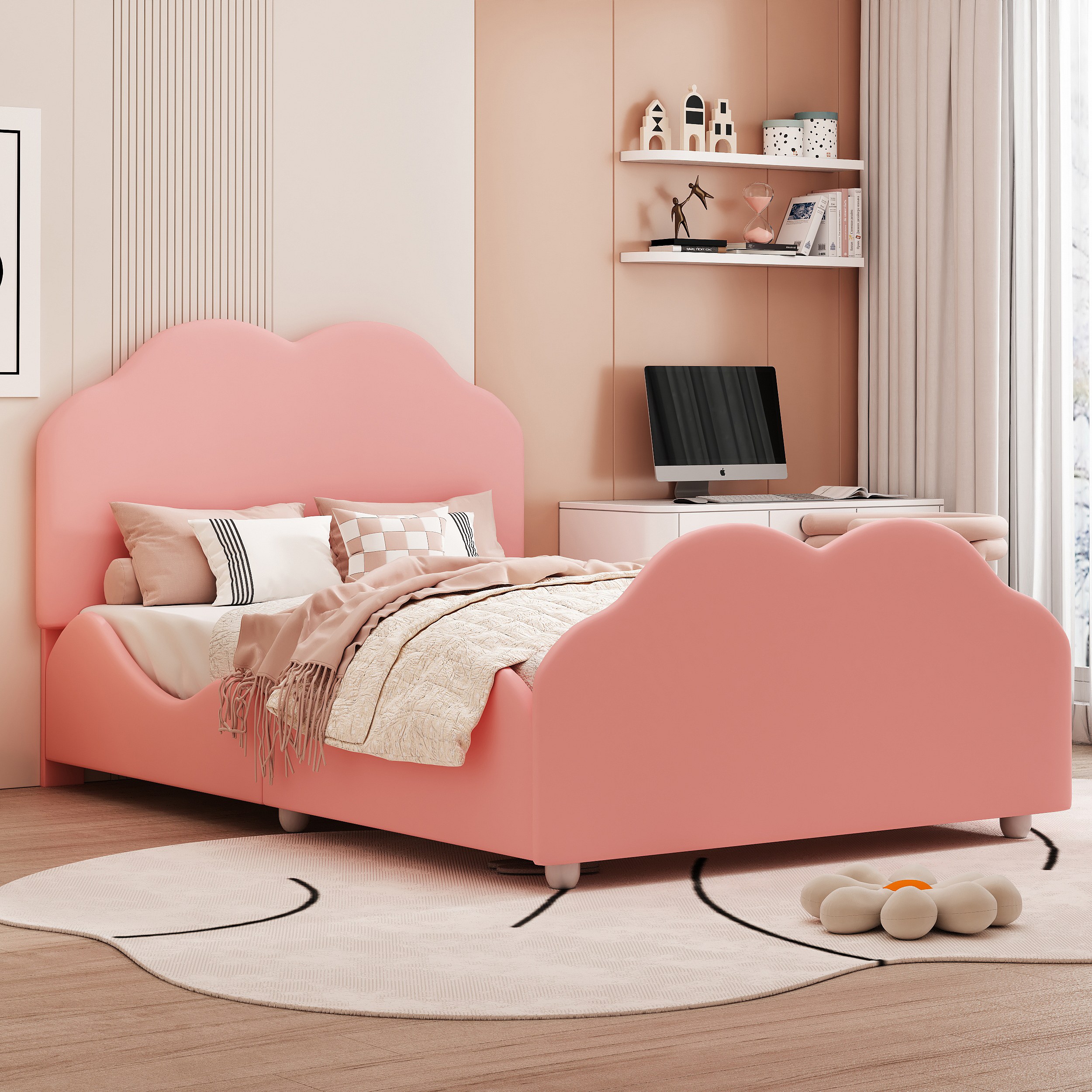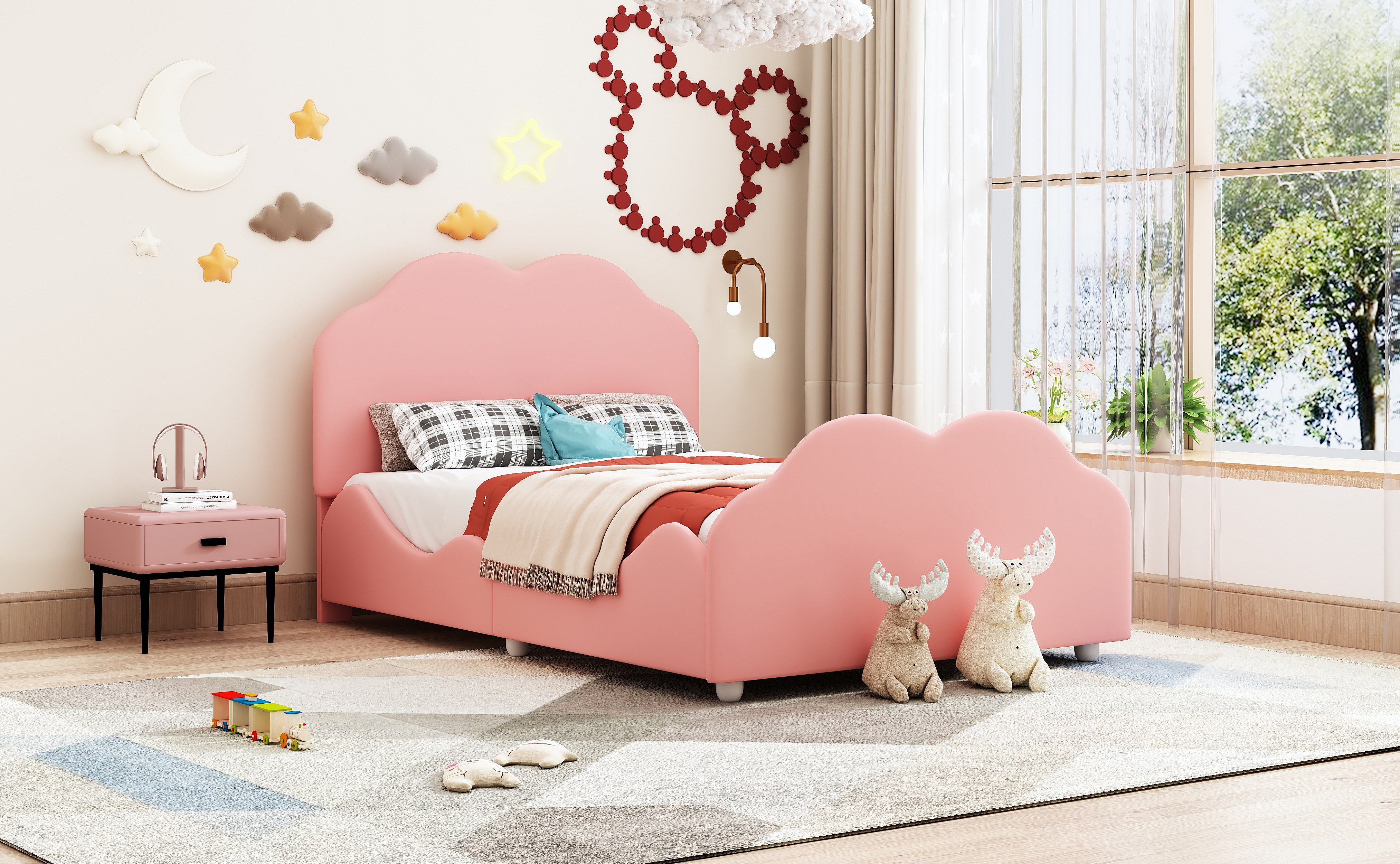 Lit rembourré 90x200 cm avec barrières hautes, tête et pied nuage, velours rose, lit enfant sécurisé