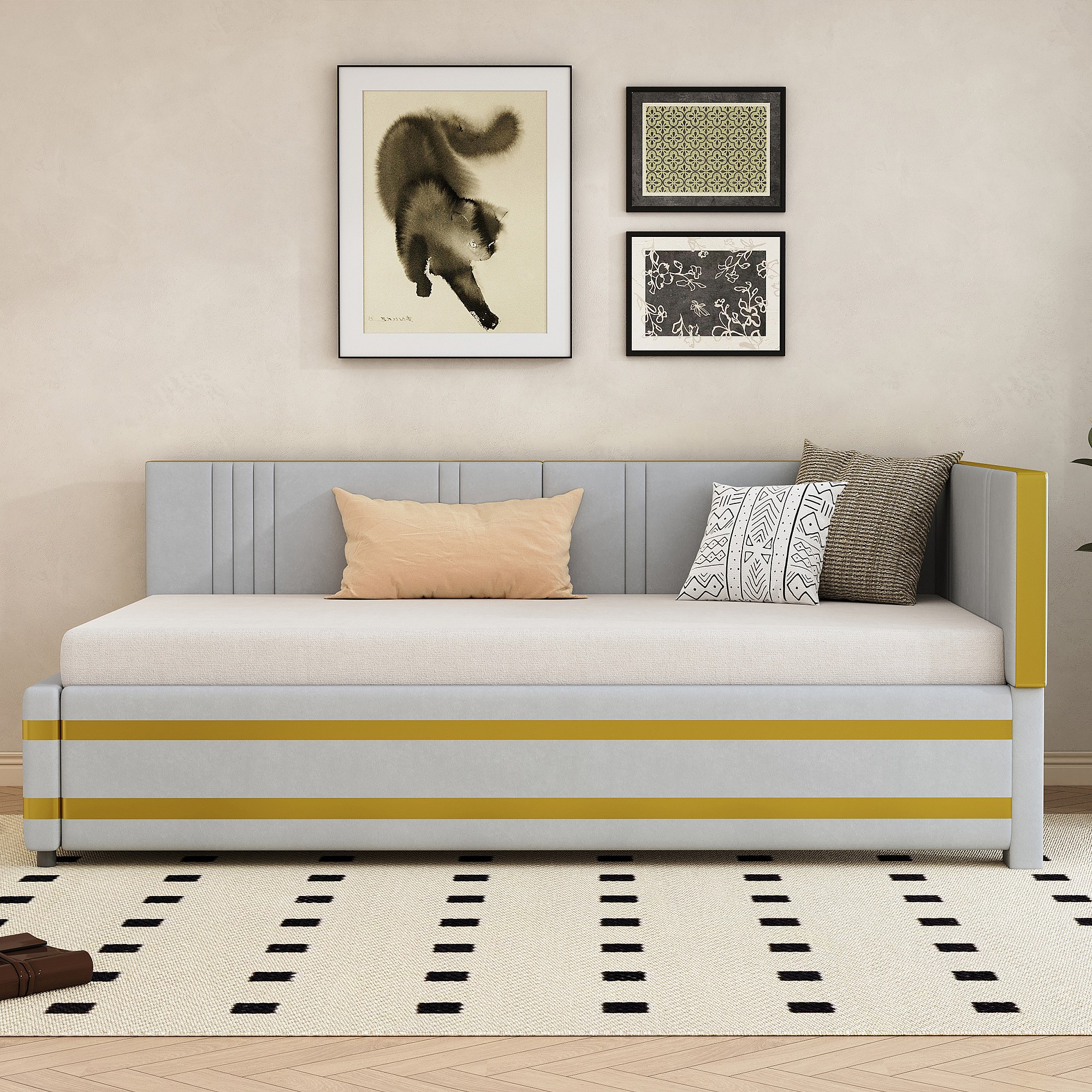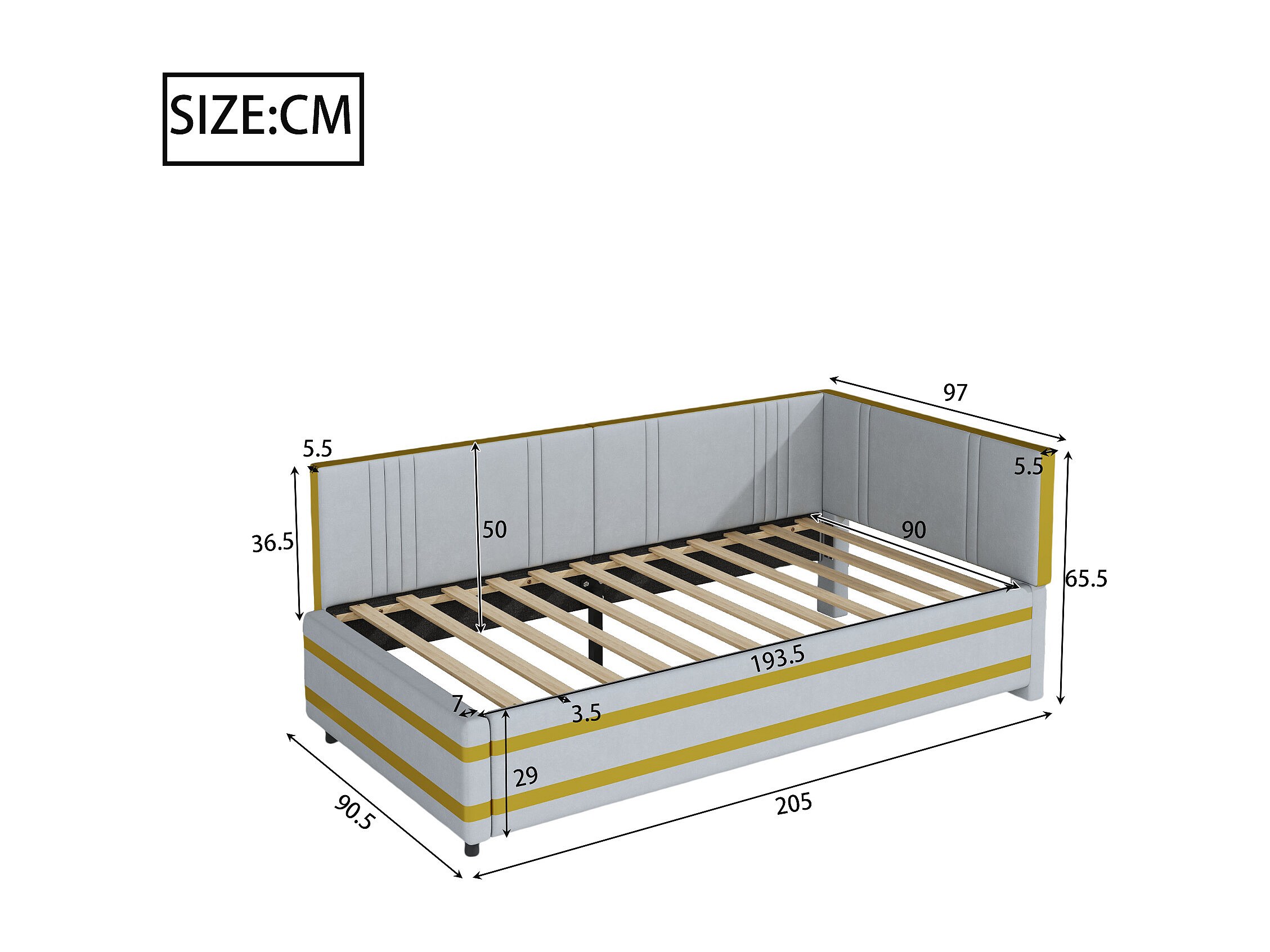 Lit rembourré 90x200 cm multifonction, sommier inclus, velours gris, convertible canapé
