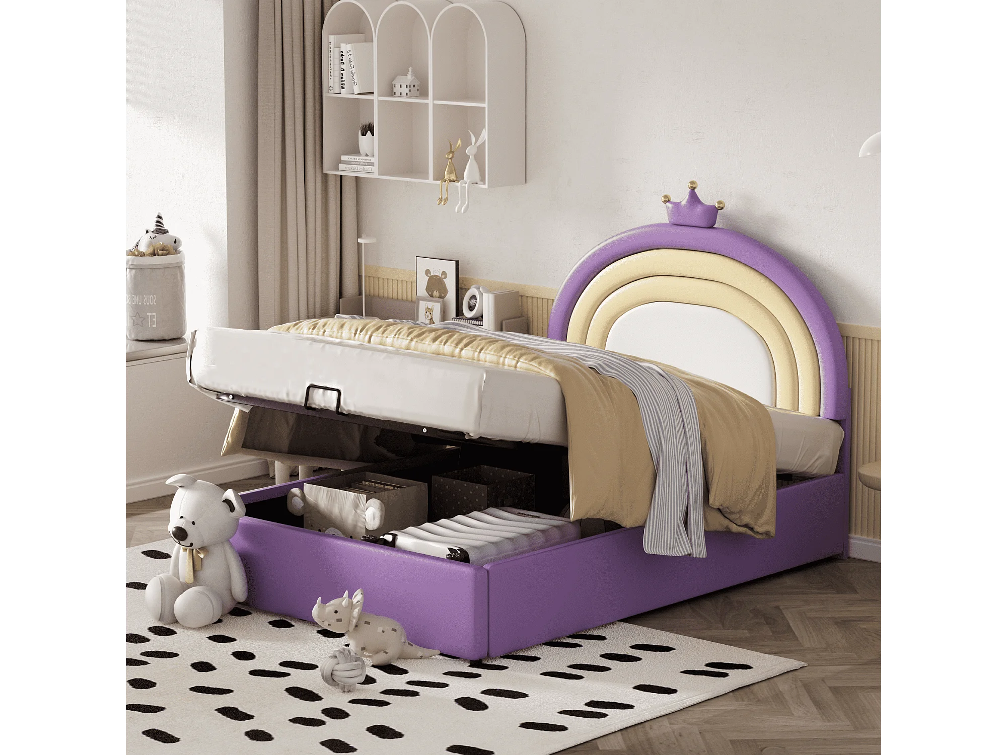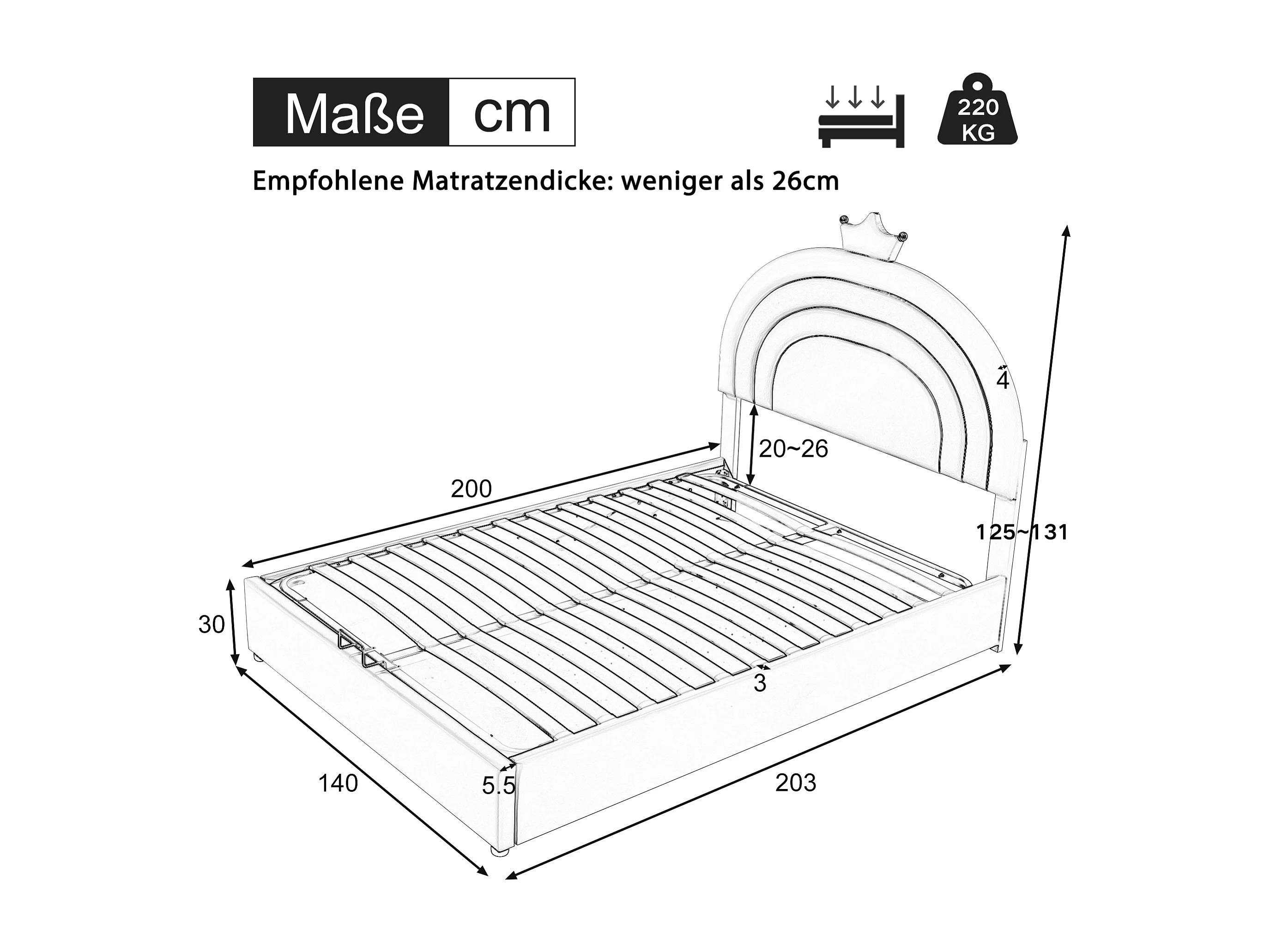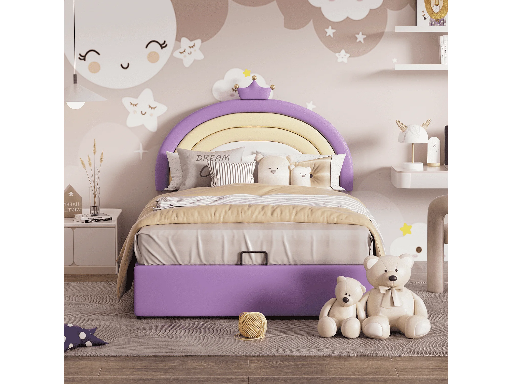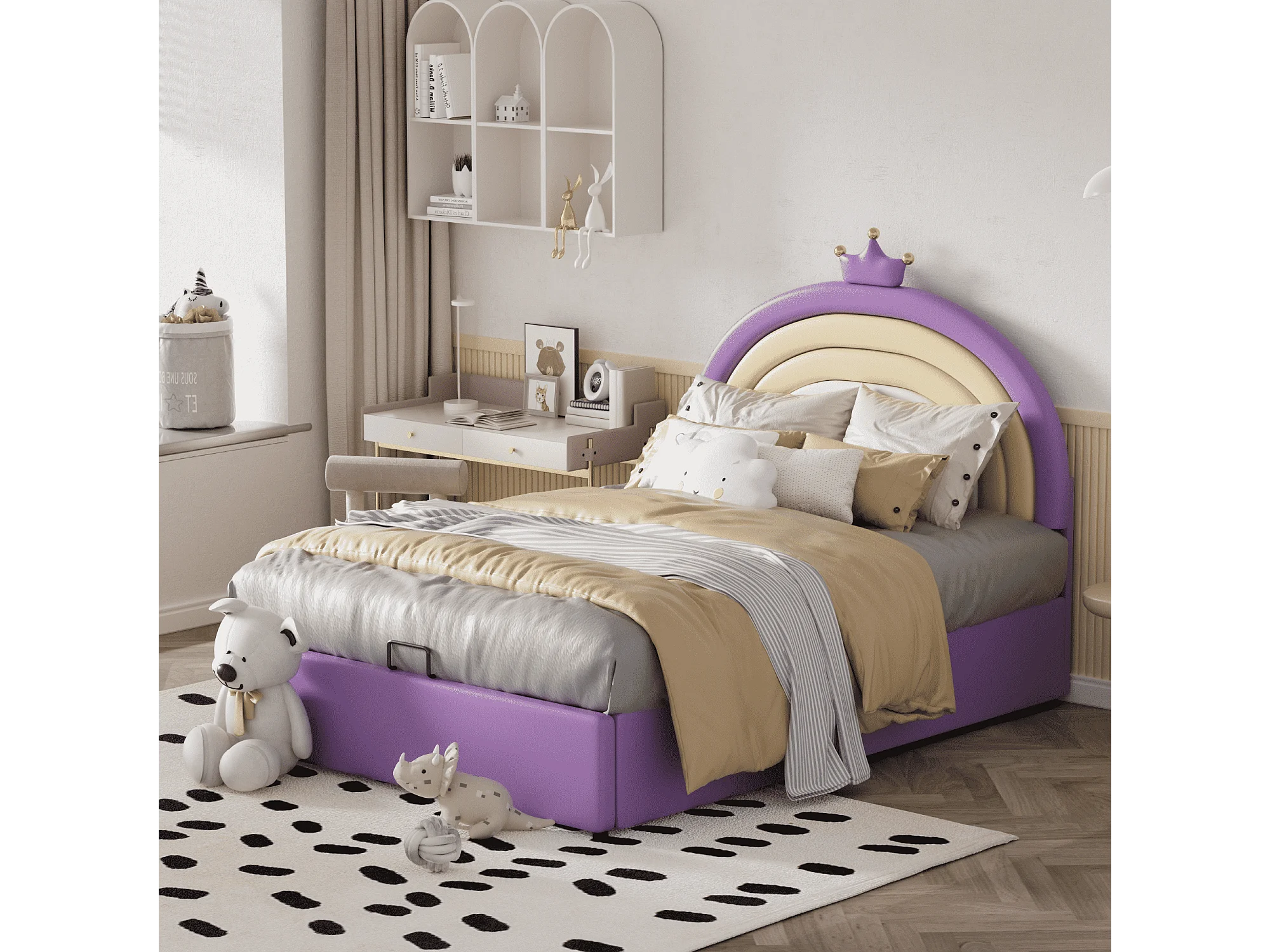 Lit rembourré adolescent Violet clair 140 * 200 avec cadre à lattes et tête de lit, support de lattes en bois, tête de lit réglable en hauteur