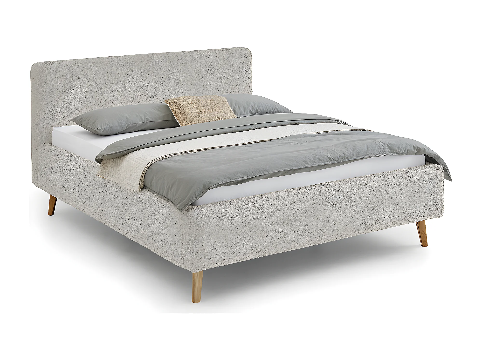 Lit rembourré adulte 140x200cm avec tête de lit en tissu beige-L. 160 x P. 218 x H. 105cm