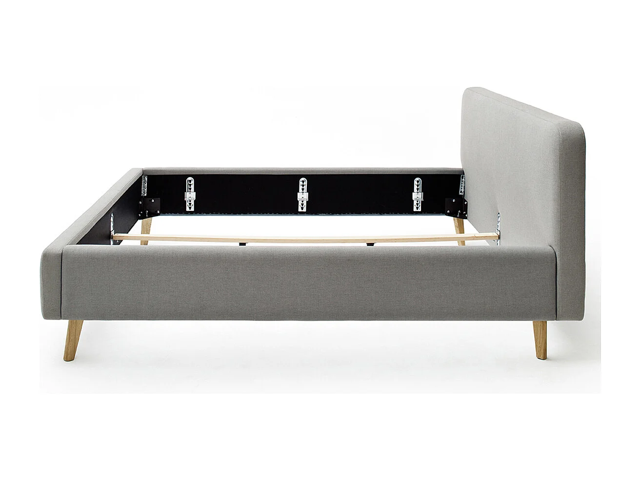 Lit rembourré adulte 180x200cm avec tête de lit en tissu gris clair-L. 200 x P. x 218 x H. 105cm