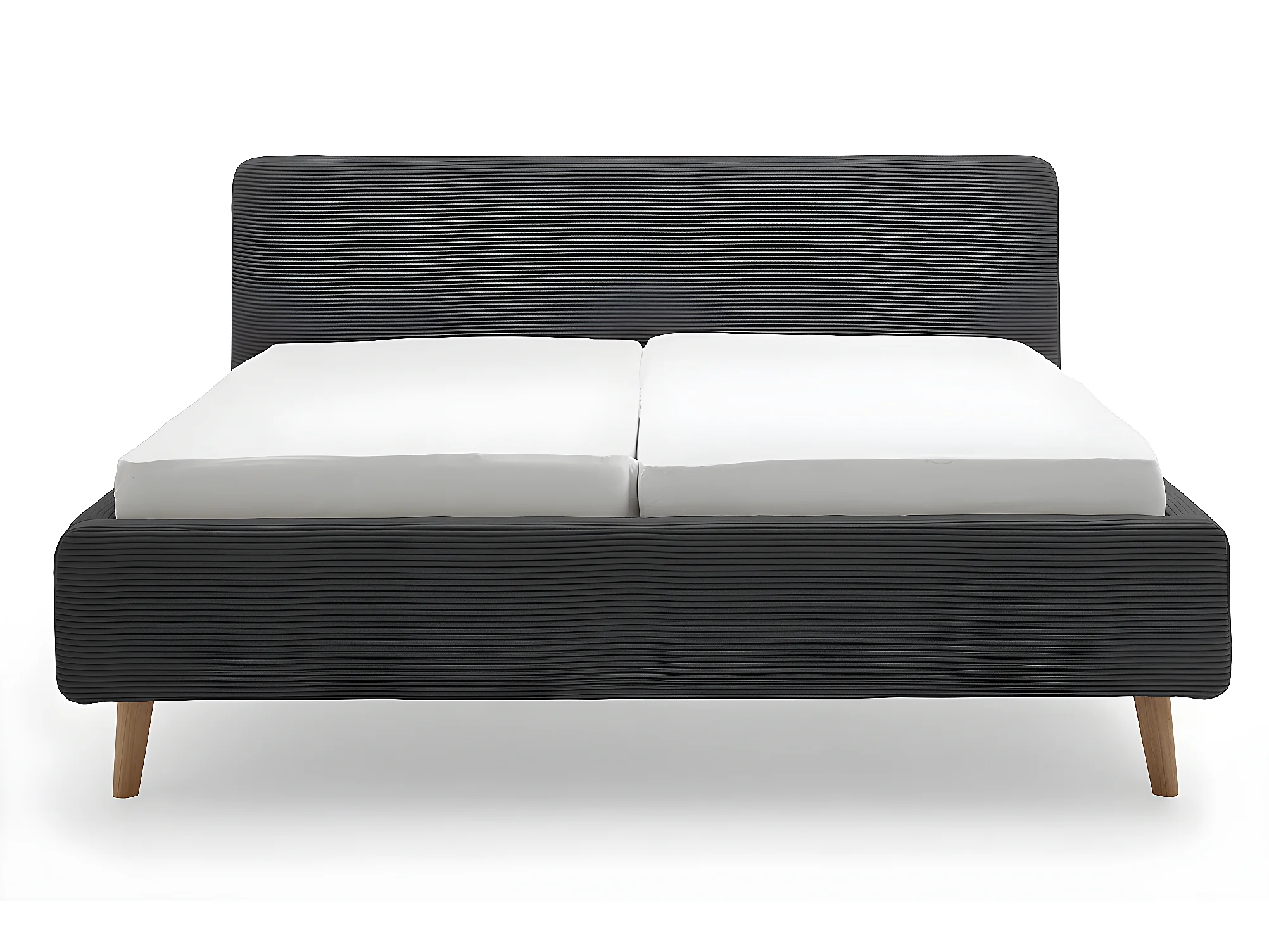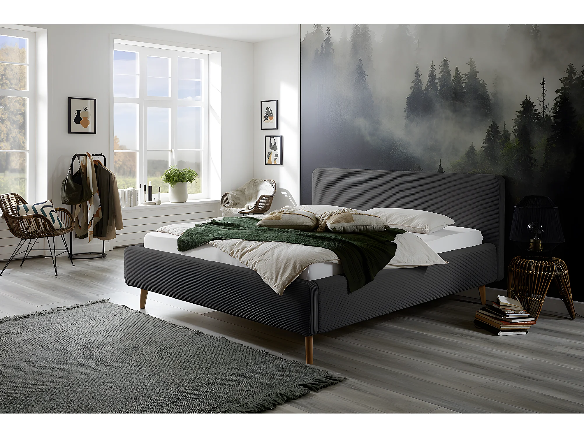 Lit rembourré adulte 180x200cm avec tête de lit en velours côtelé coloris anthracite
