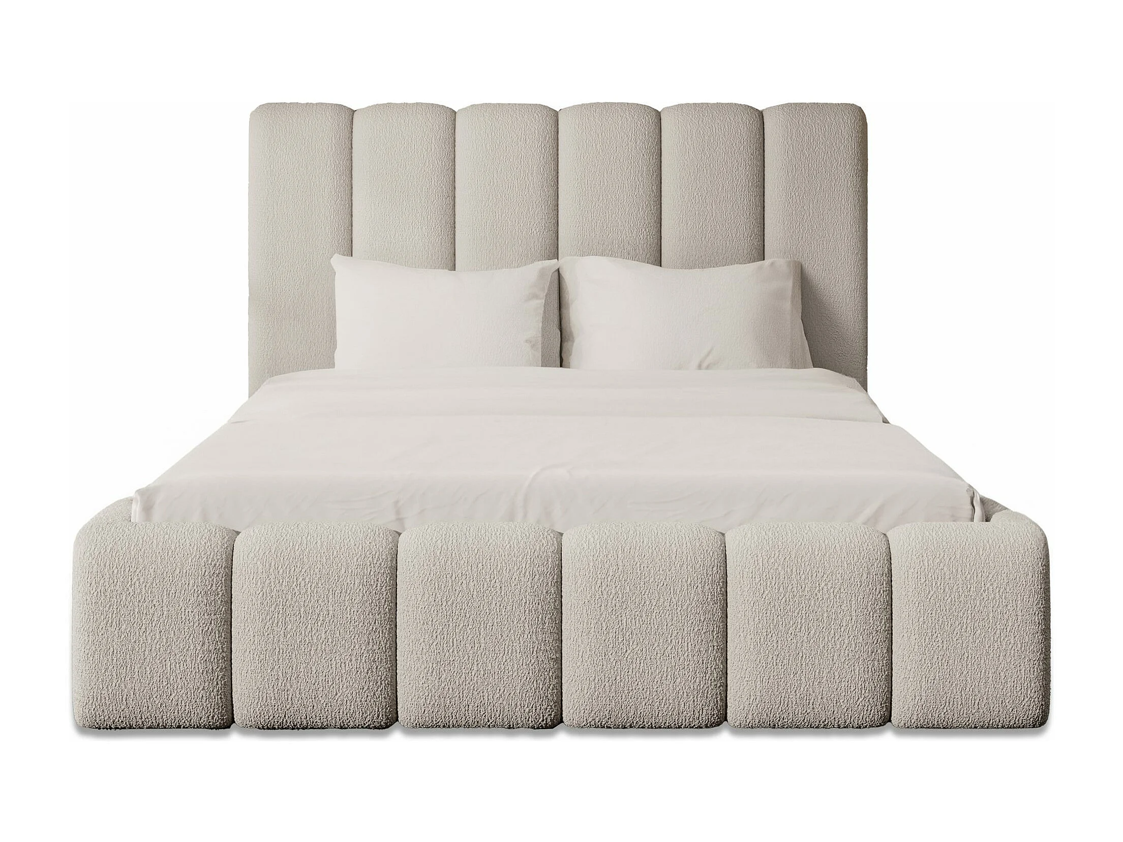LIT REMBOURRÉ avec coffre et matelas Andorf 200x200 cm, Beige clair (Abriamo 3 – Bouclé)