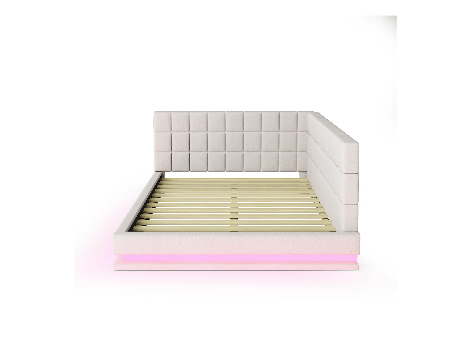 Lit rembourré avec LED et USB, cadre de lit avec sommier à lattes, lit de repos, Beige-160 * 200cm