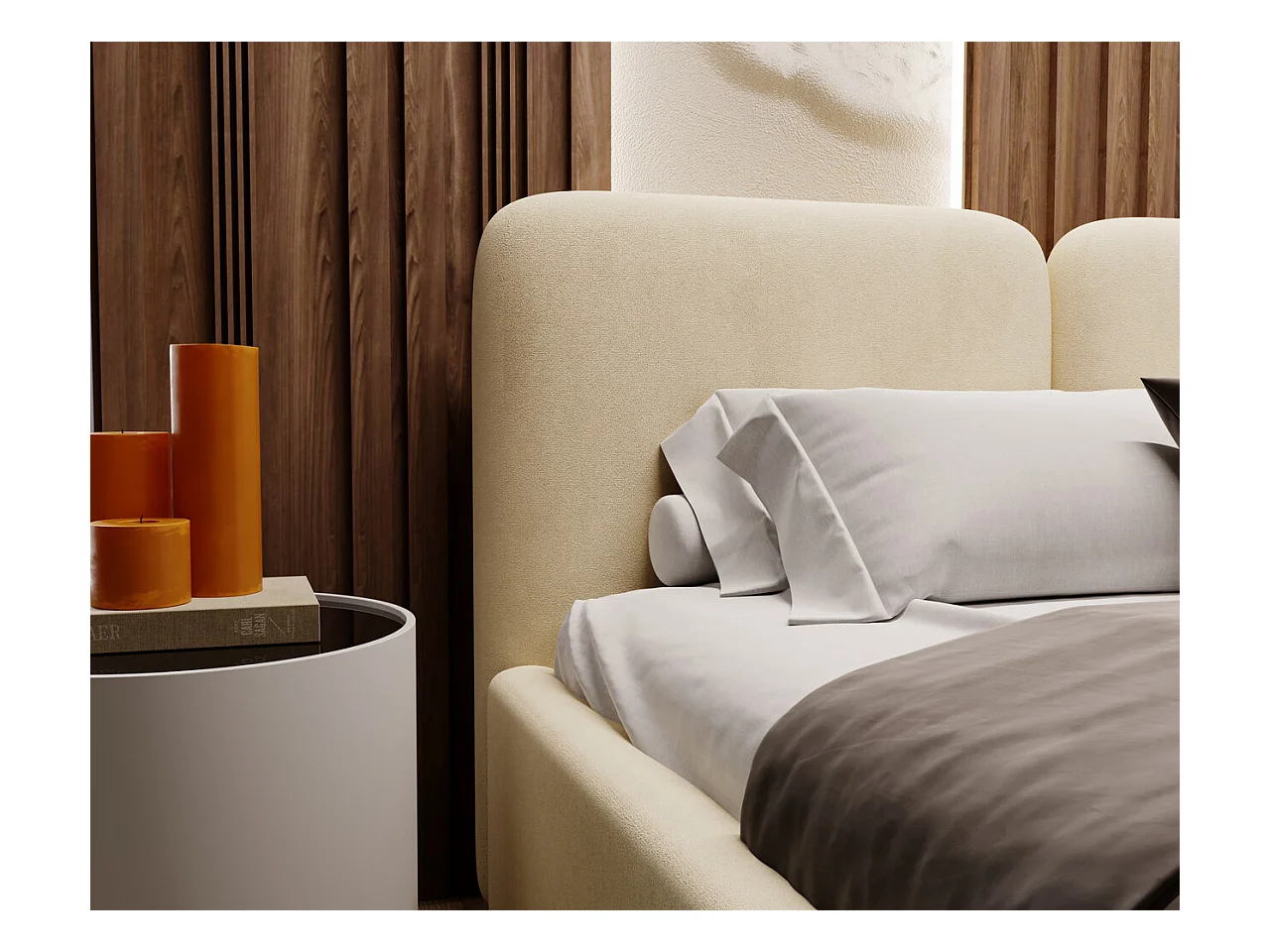 Lit rembourré avec rangement - 120 x 200 - lit double - velours - beige - Palermo