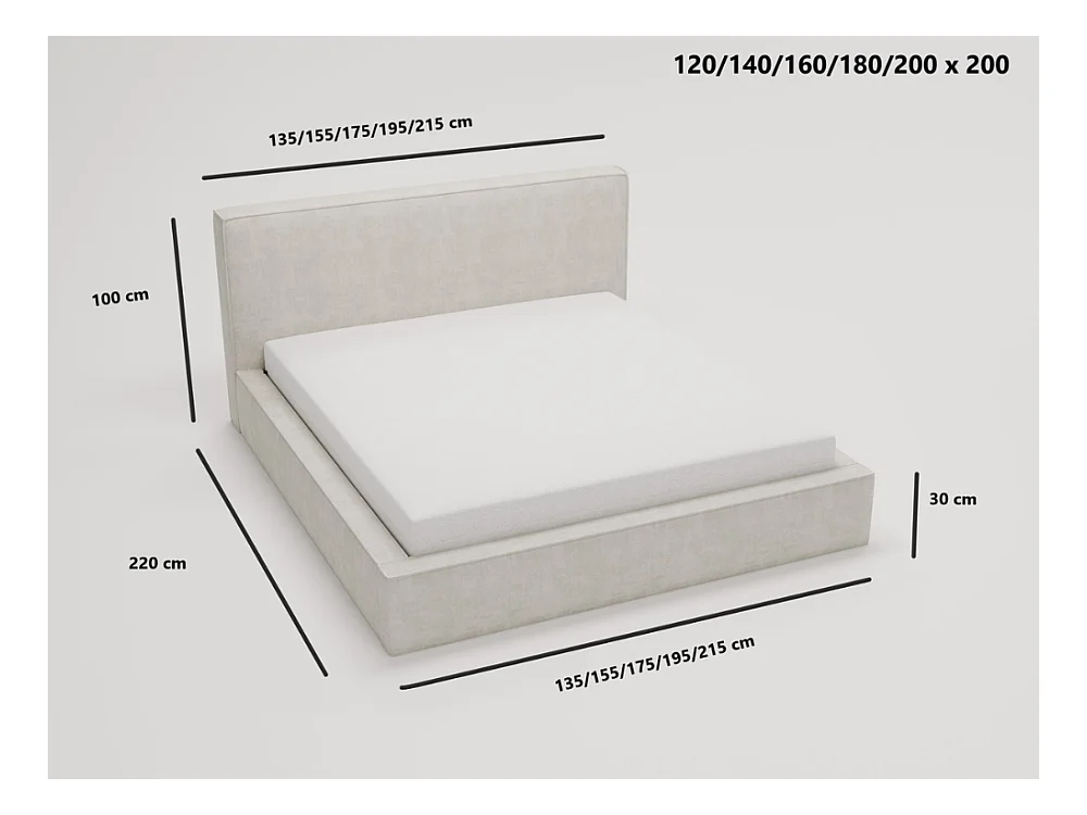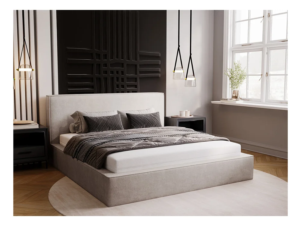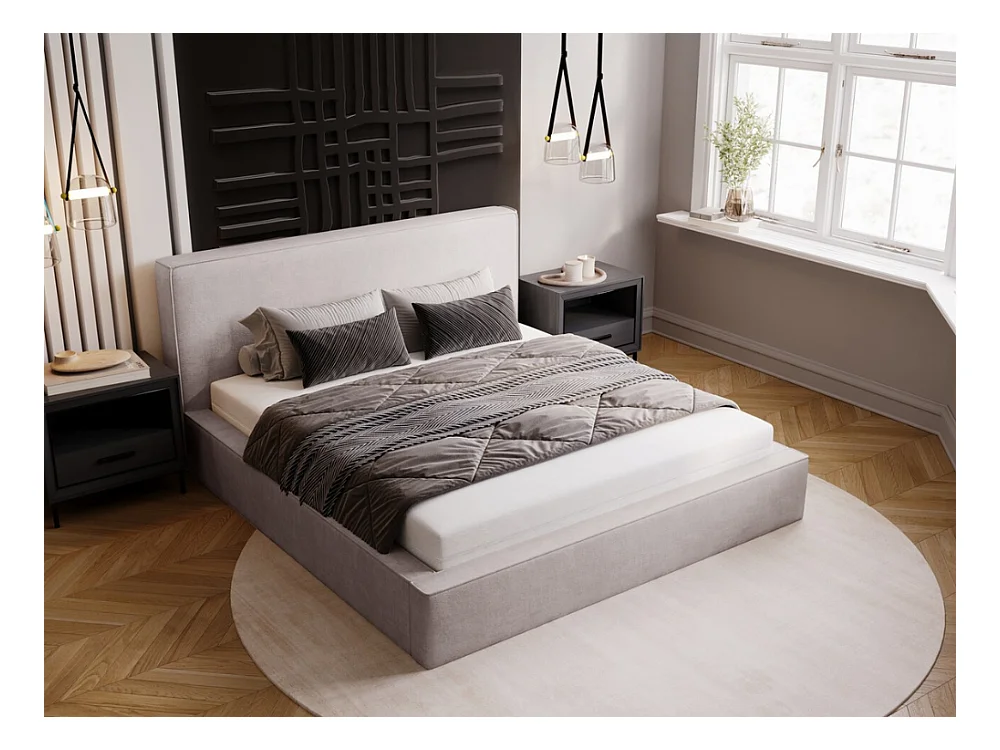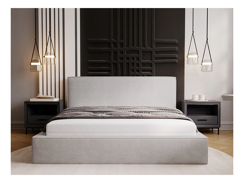 Lit rembourré avec rangement - 120 x 200 - lit double - velours - gris clair - Monaco