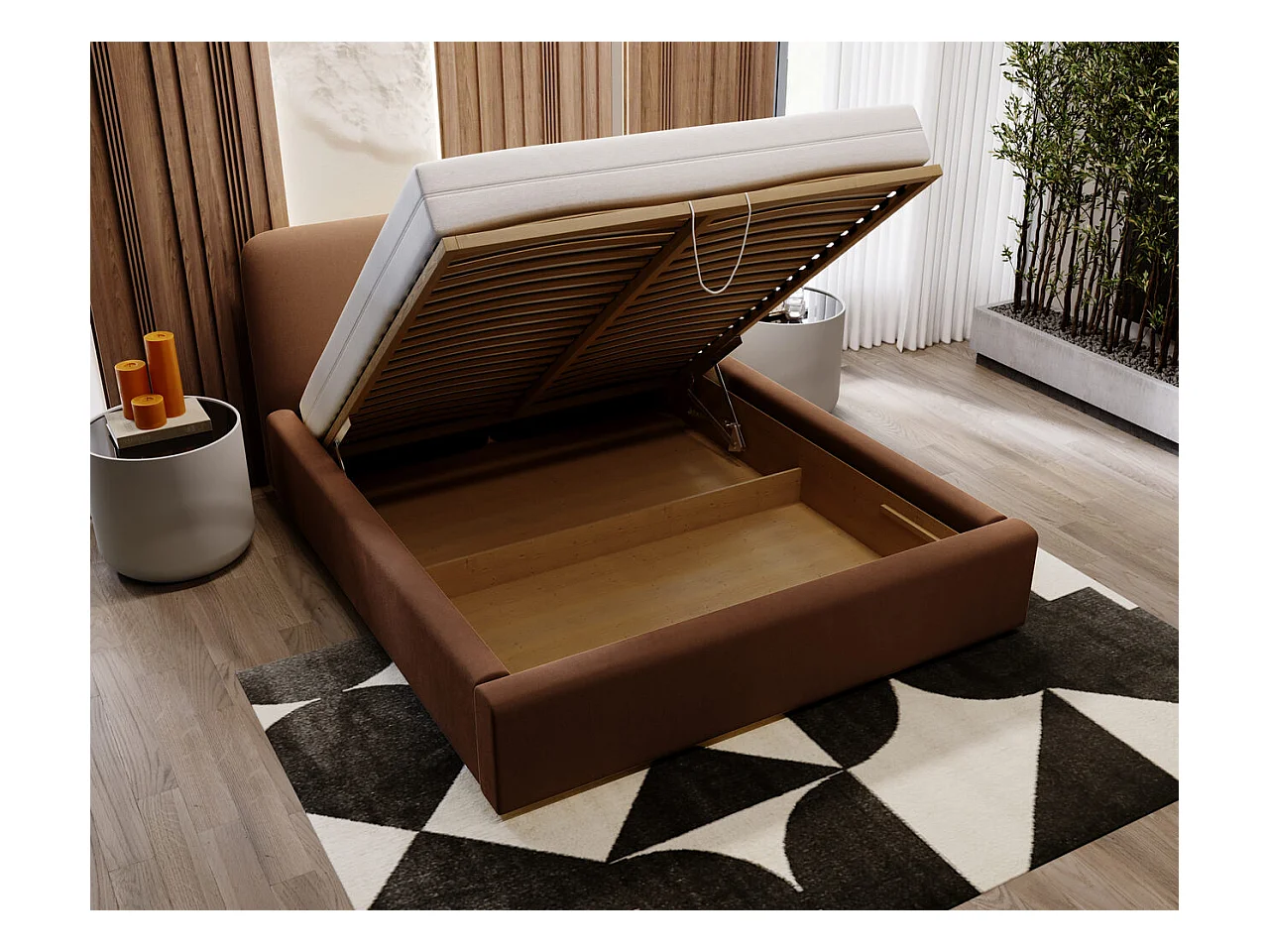 Lit rembourré avec rangement - 120 x 200 - lit double - velours - marron - Palermo
