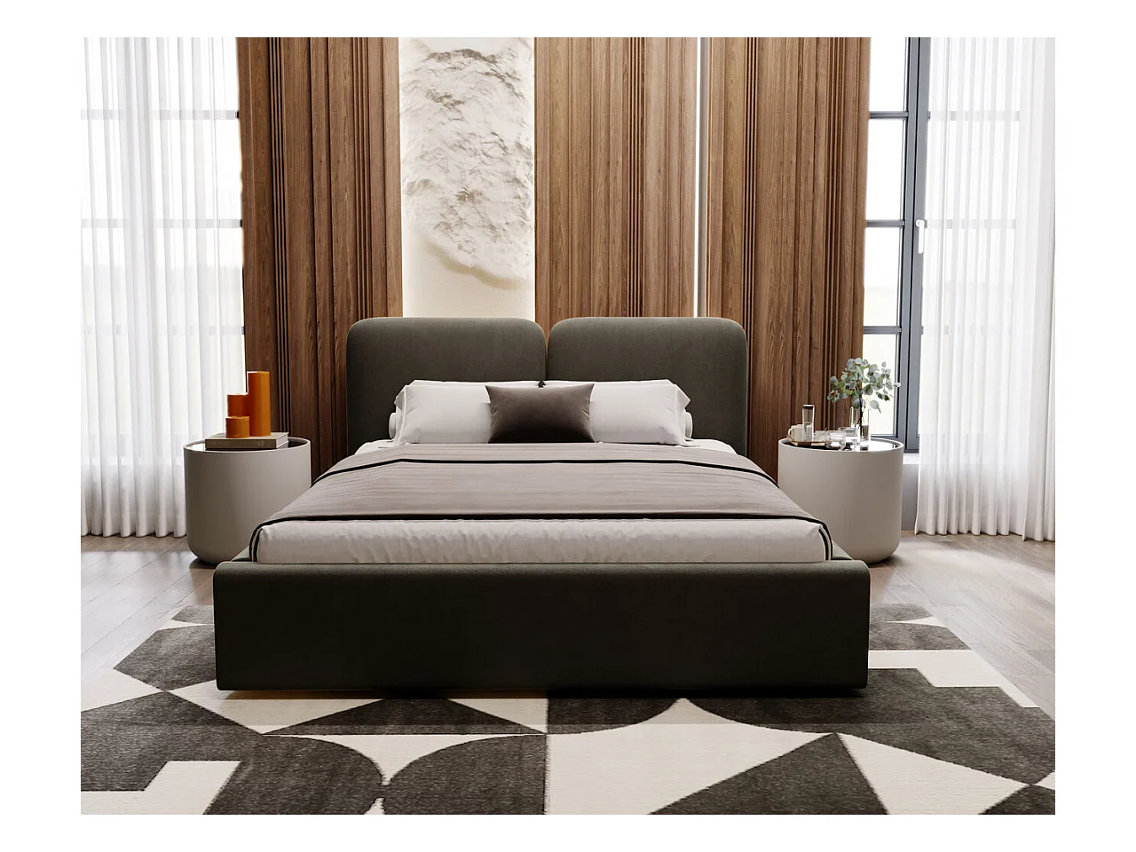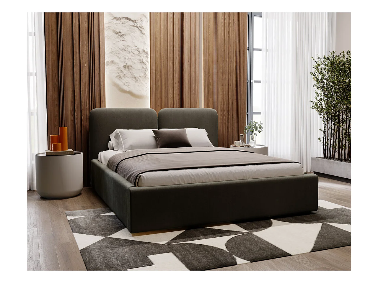 Lit rembourré avec rangement - 140 x 200 - lit double - velours - gris foncé - Palermo