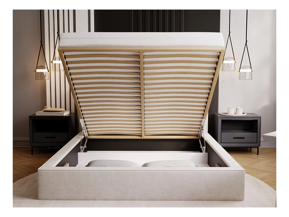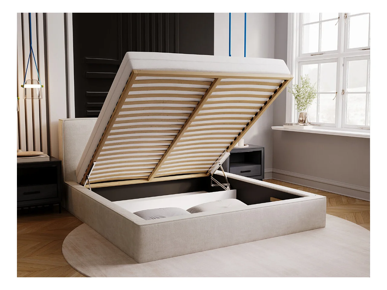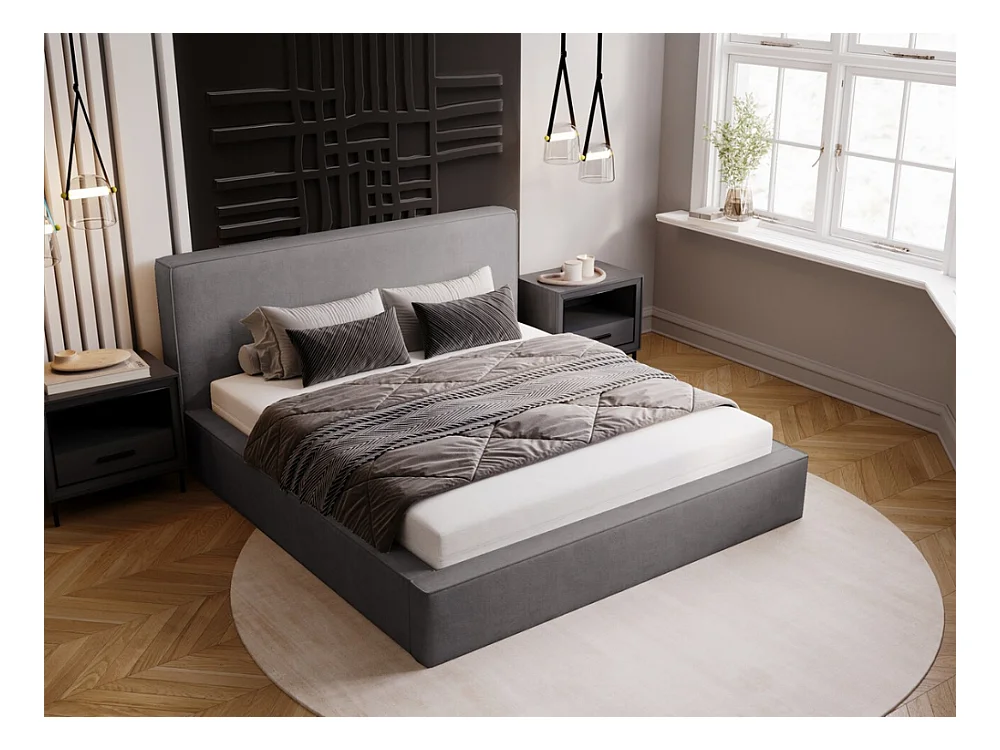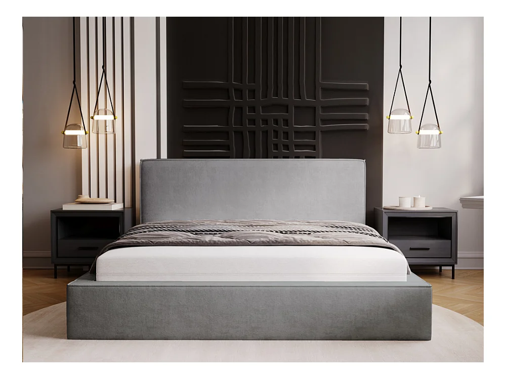 Lit rembourré avec rangement - 140 x 200 - lit double - velours - gris - Monaco