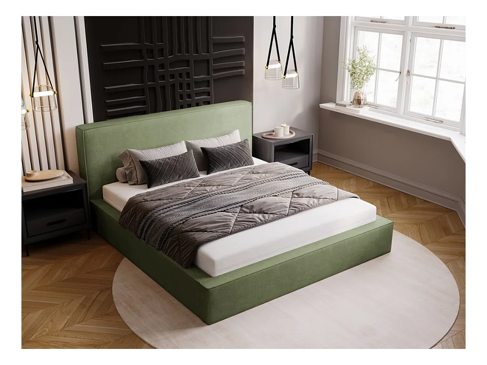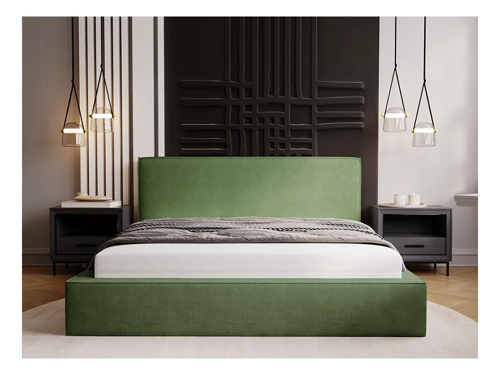 Lit rembourré avec rangement - 140 x 200 - lit double - velours - vert - Monaco