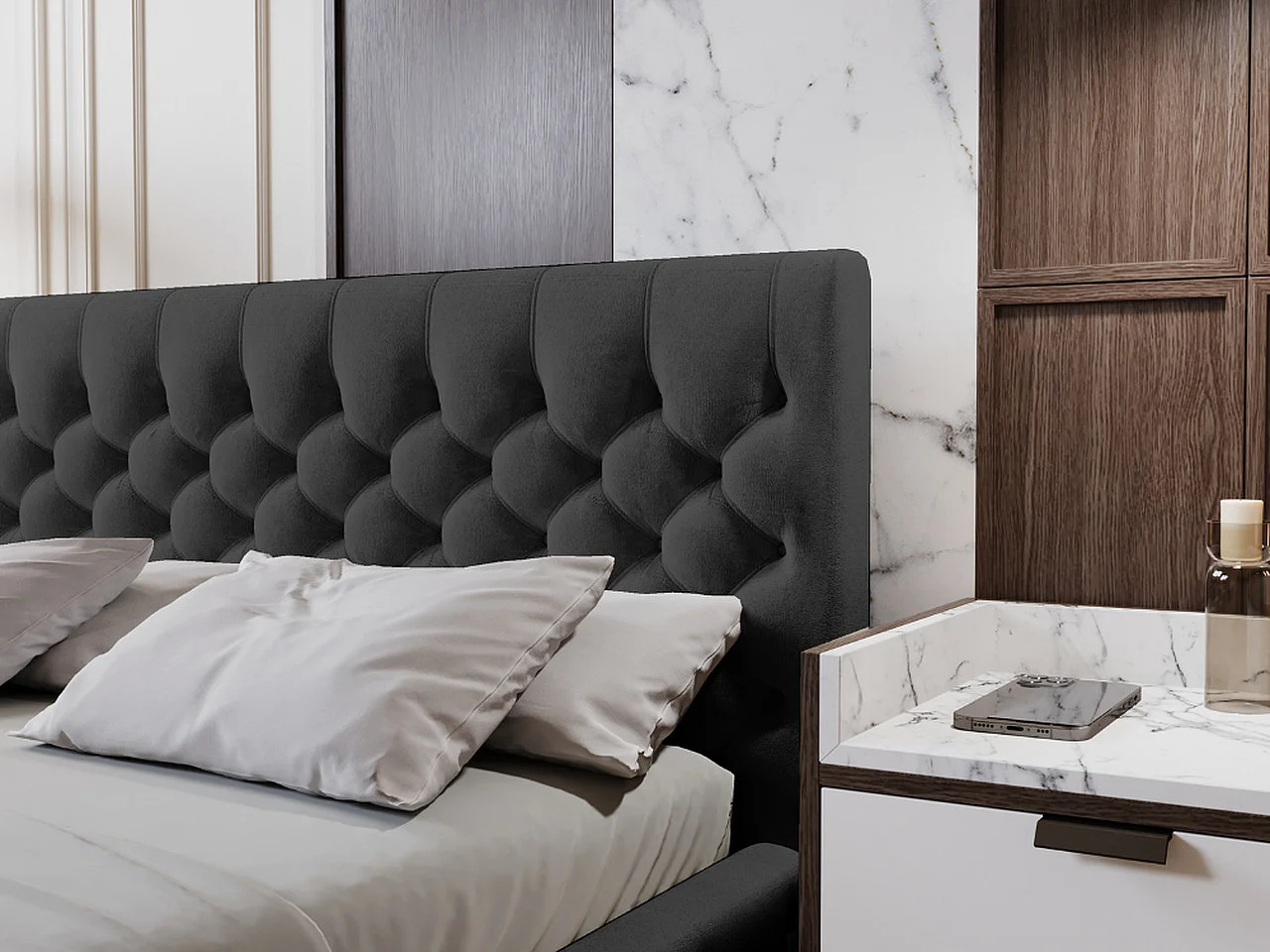 Lit rembourré avec rangement - 160 x 200 - lit double - velours - noir - Velutto