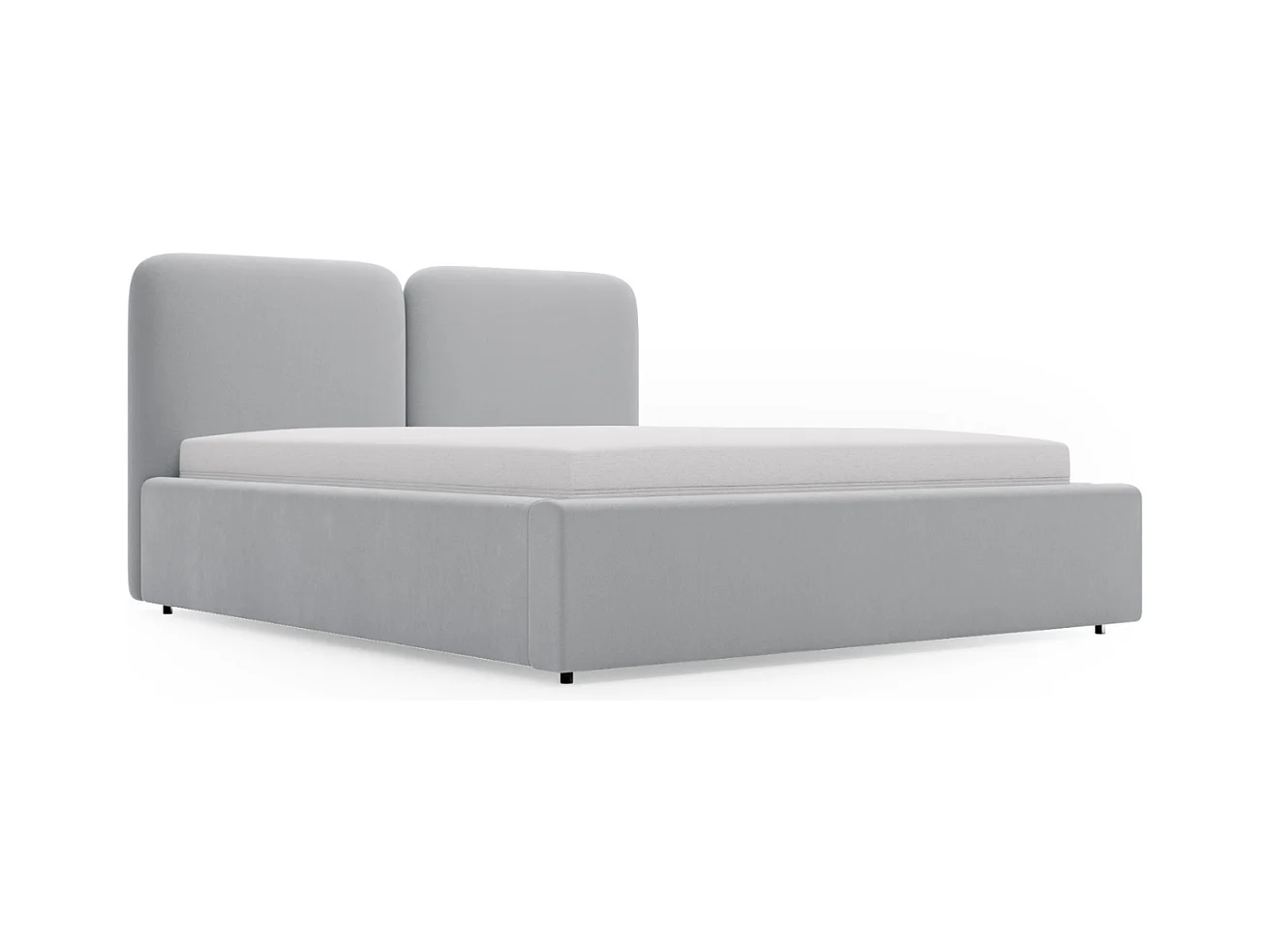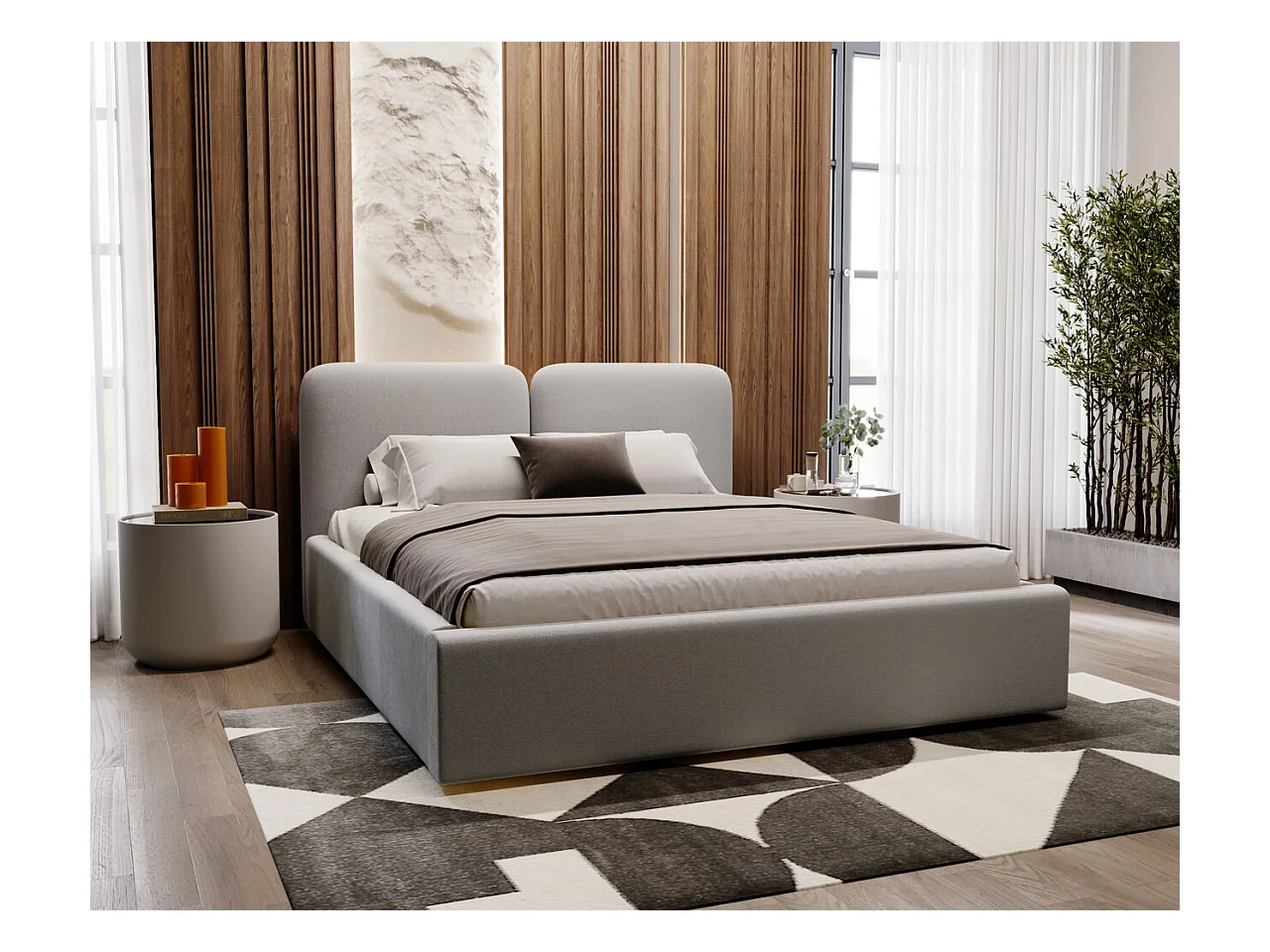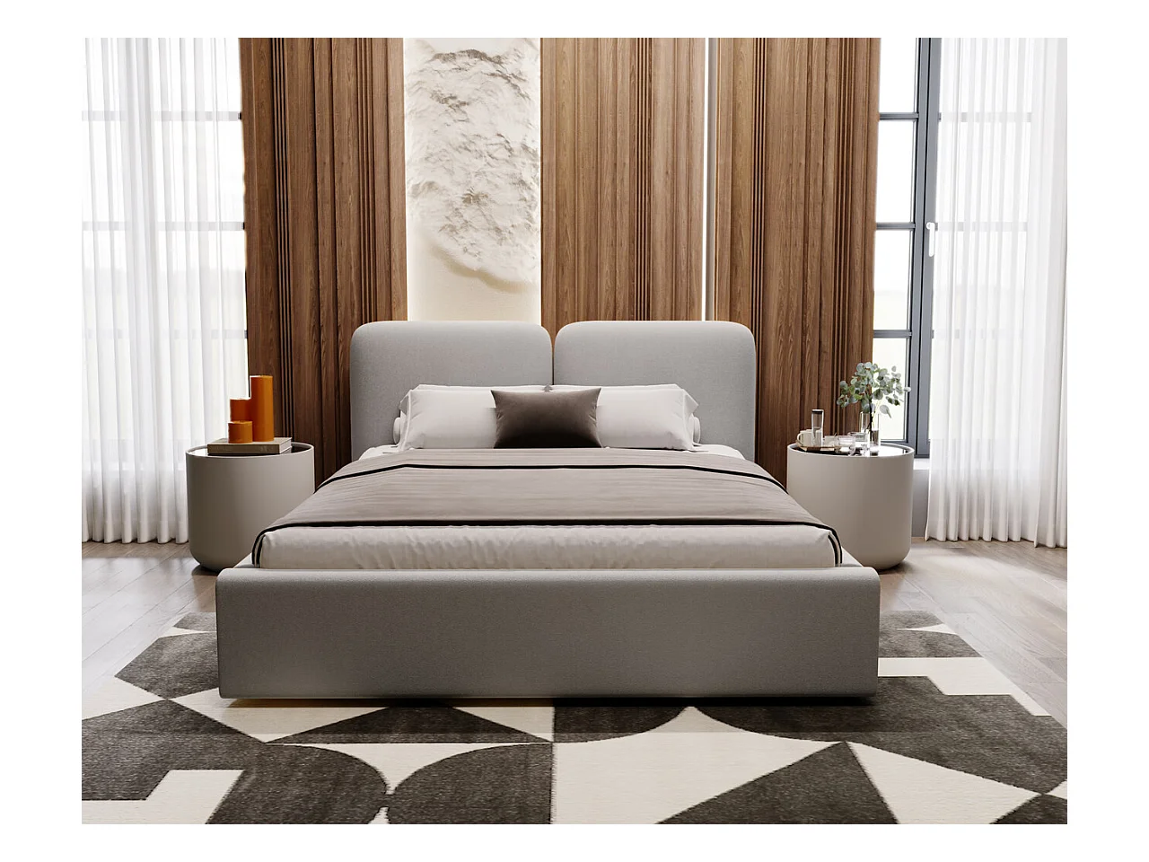 Lit rembourré avec rangement - 180 x 200 - lit double - velours - gris clair - Palermo