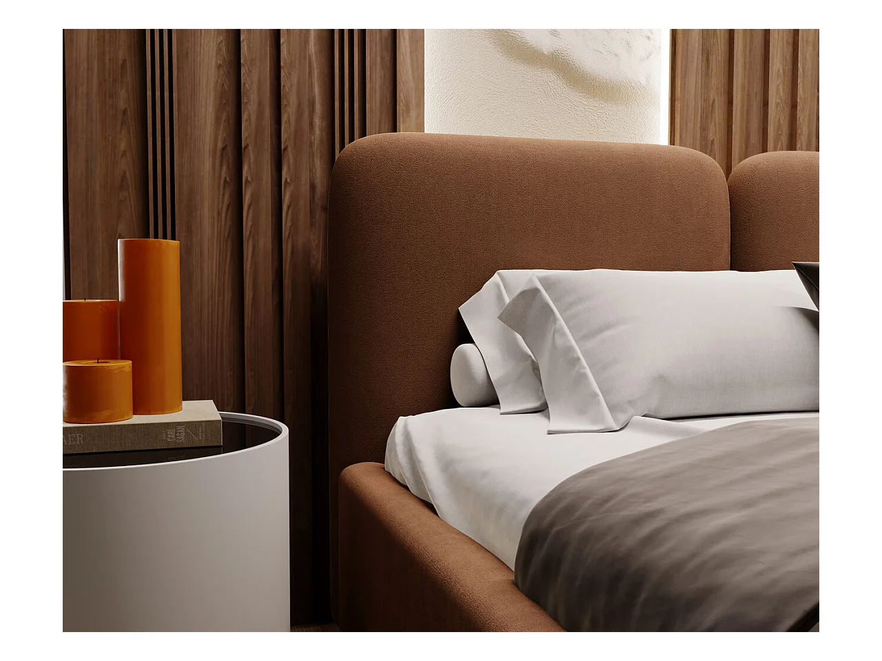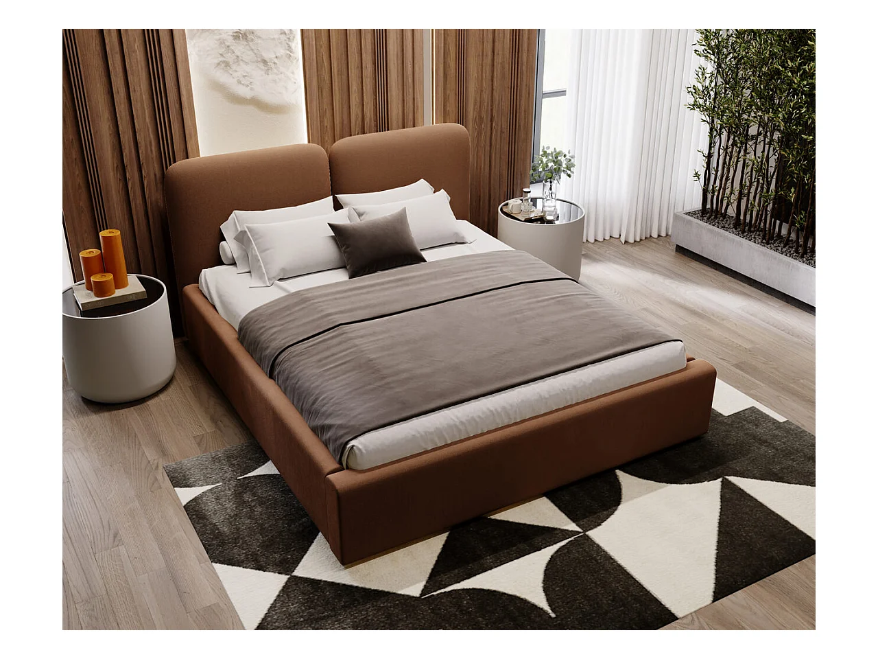 Lit rembourré avec rangement - 180 x 200 - lit double - velours - marron - Palermo
