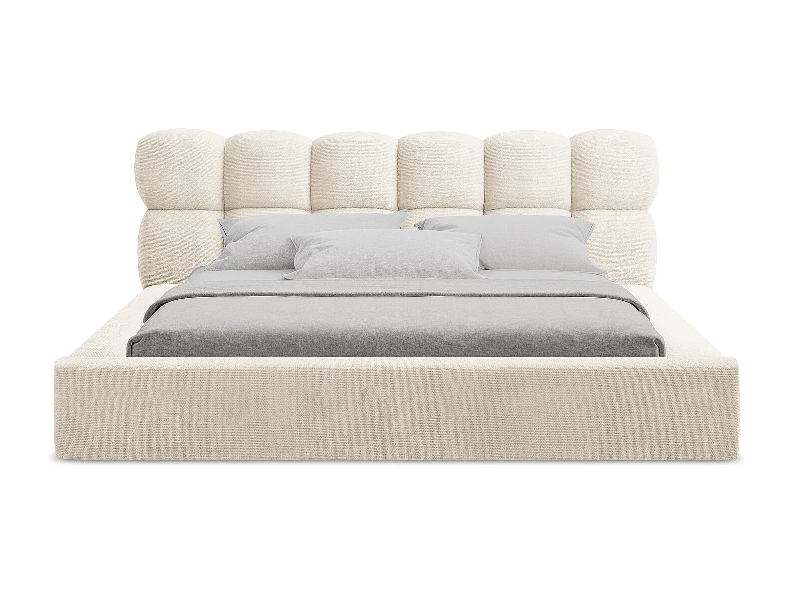 Lit rembourré avec rangement 180 x 240 - en Chenille - beige clair - KAHU
