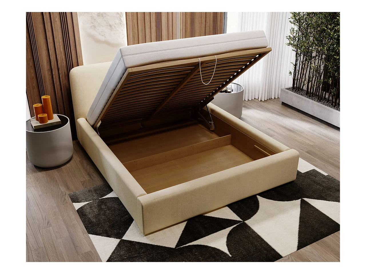 Lit rembourré avec rangement - 200 x 200 - lit double - velours - beige - Palermo