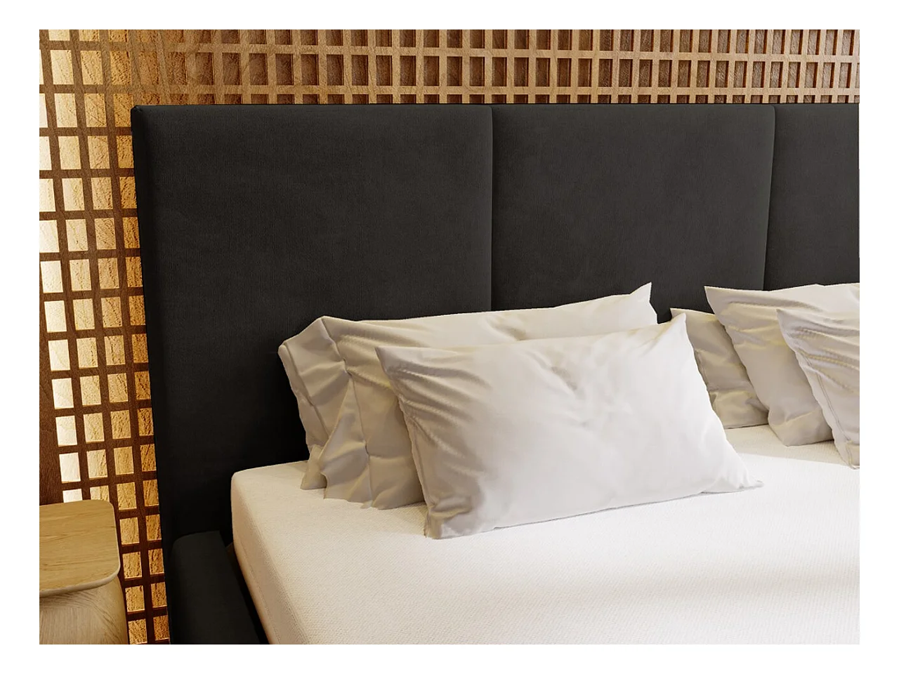 Lit rembourré avec rangement - 200 x 200 - lit double - velours - noir - Lincoln