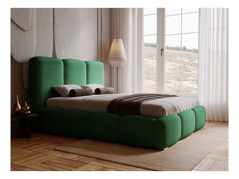 Lit rembourré avec rangement - 200 x 200 - lit double - velours - vert - Bubble