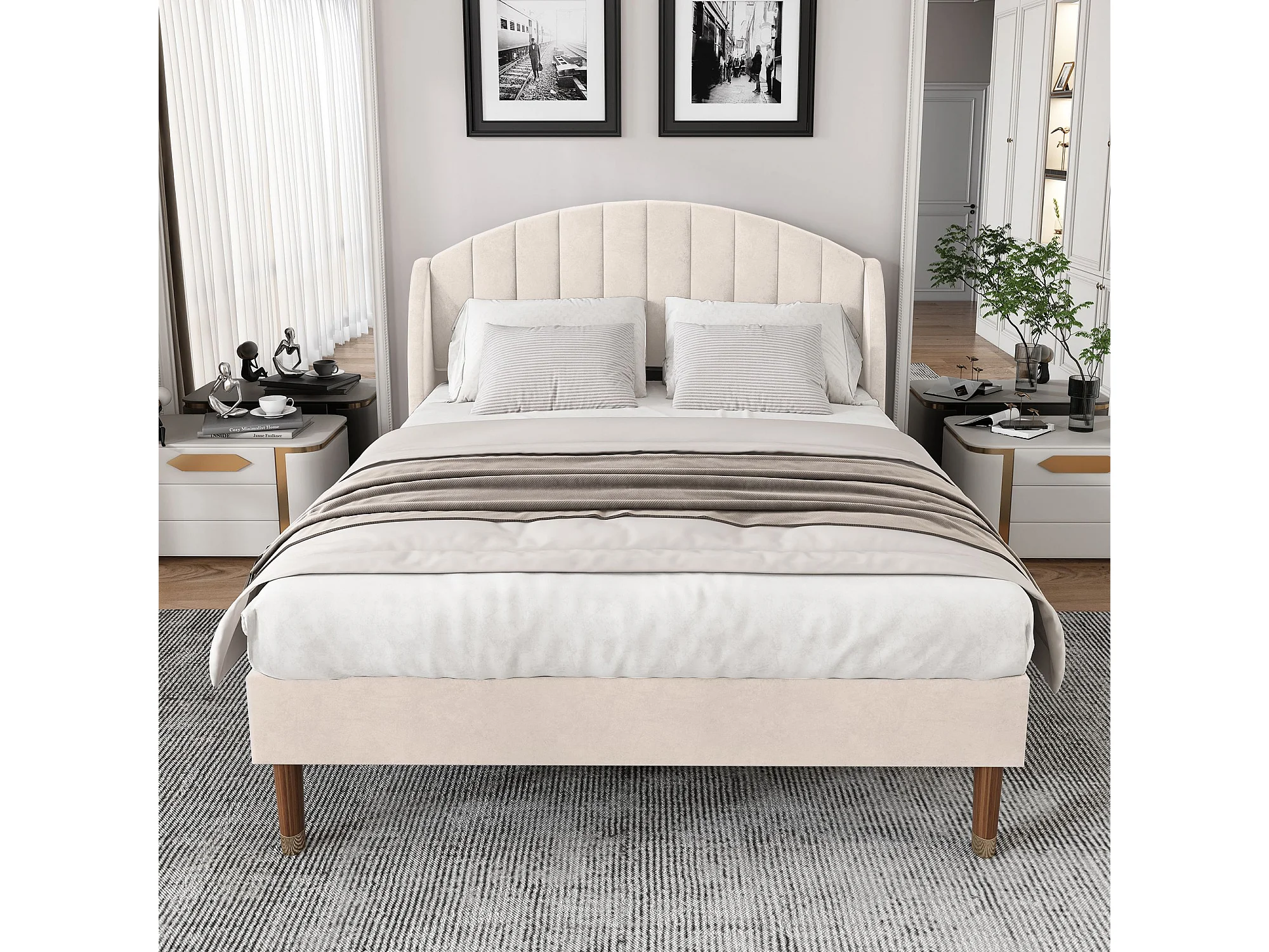 Lit rembourré avec sommier à lattes et tête de lit, support de lattes en bois, lit pour adolescent, 140x200 cm,beige,Sans matelas