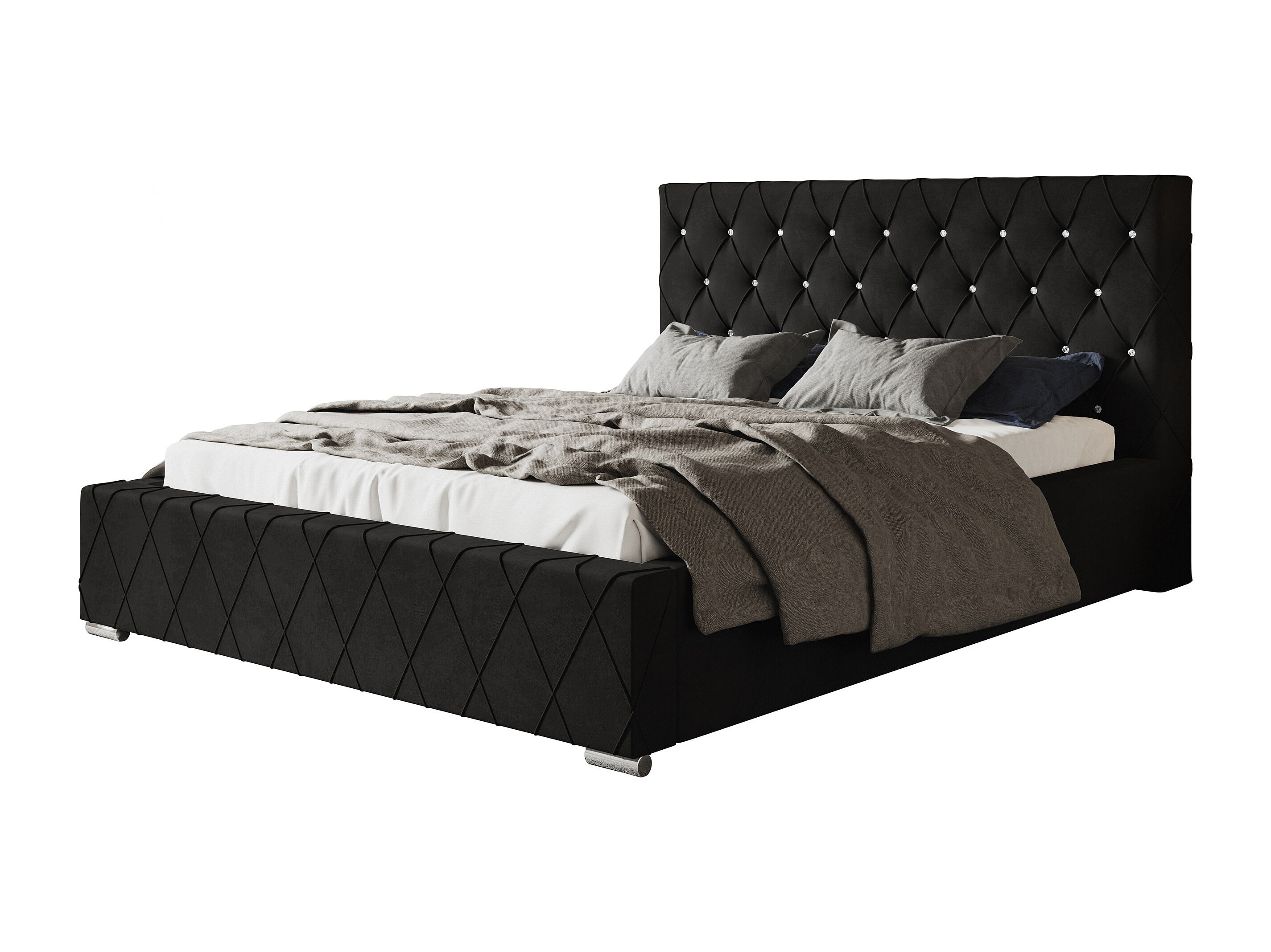 Lit rembourré Berlin avec tête de lit, 120x200 cm, lit double avec coffre de rangement et sommier à lattes en bois, tissu velours, couleur : noir