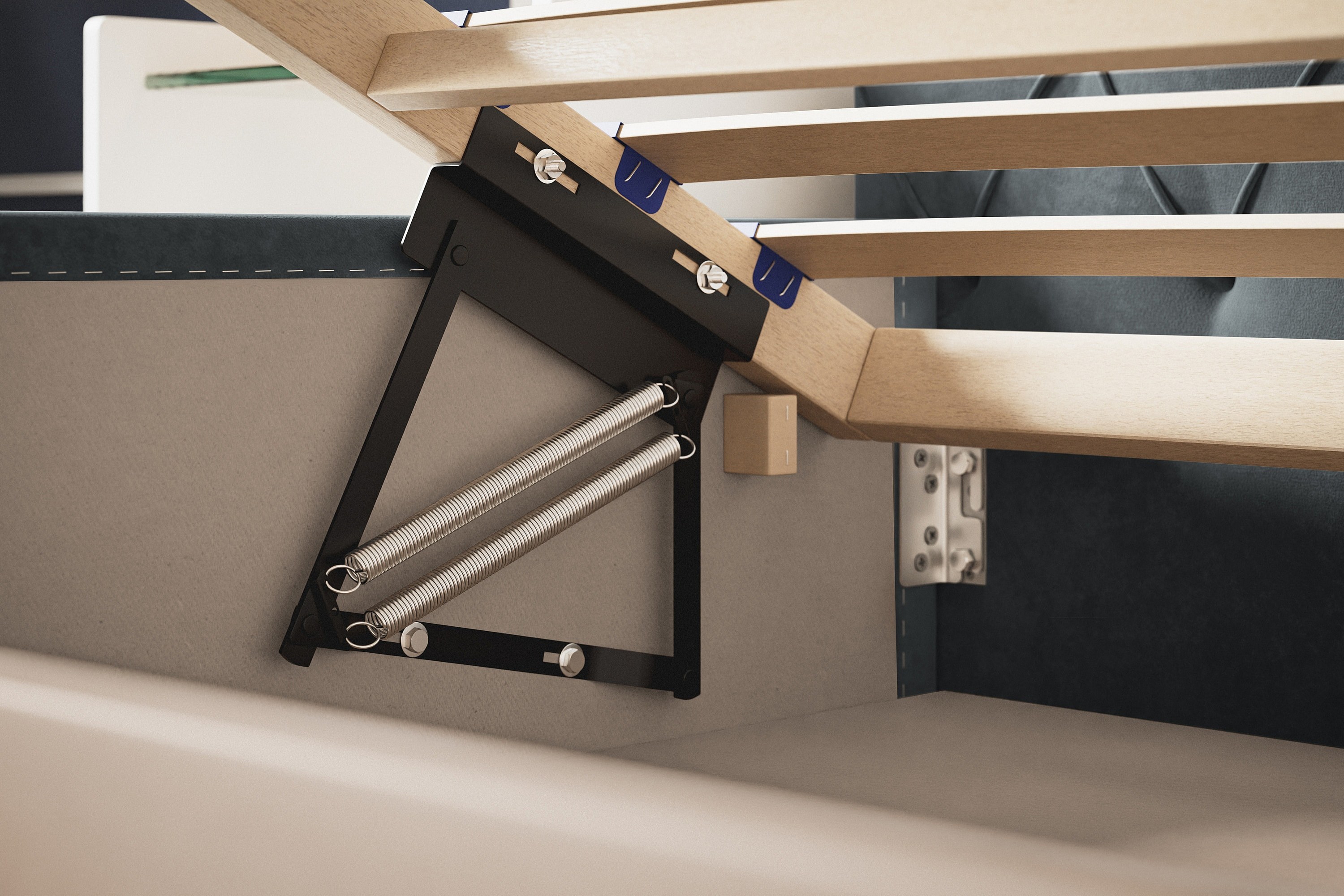 Lit rembourré Berlin avec tête de lit, 160x200 cm, lit double avec coffre de rangement et sommier à lattes en bois, tissu velours, couleur : gris