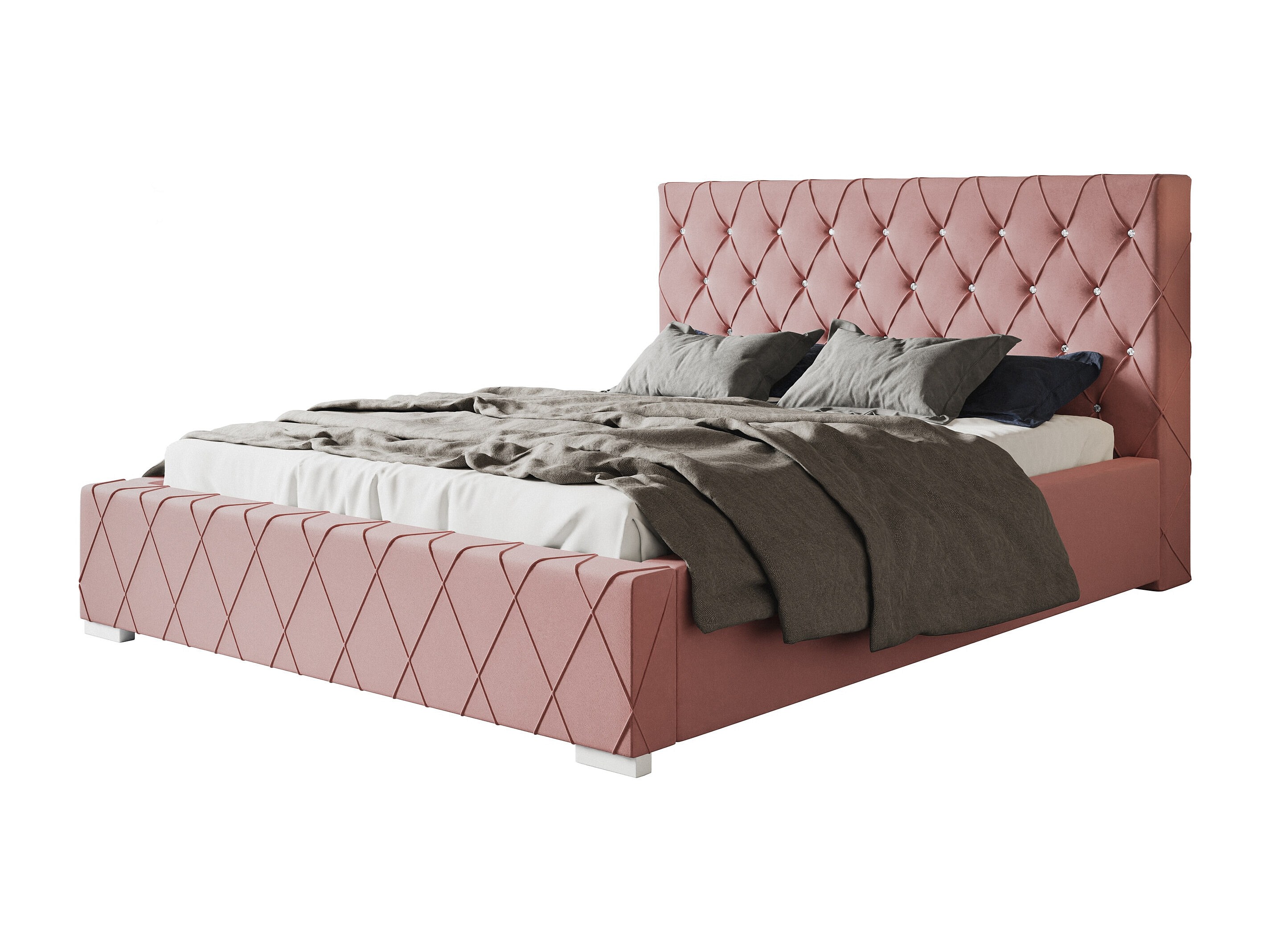 Lit rembourré Berlin avec tête de lit, 180 x 200 cm, lit double avec coffre de rangement et sommier à lattes en bois, tissu velours, couleur : rose