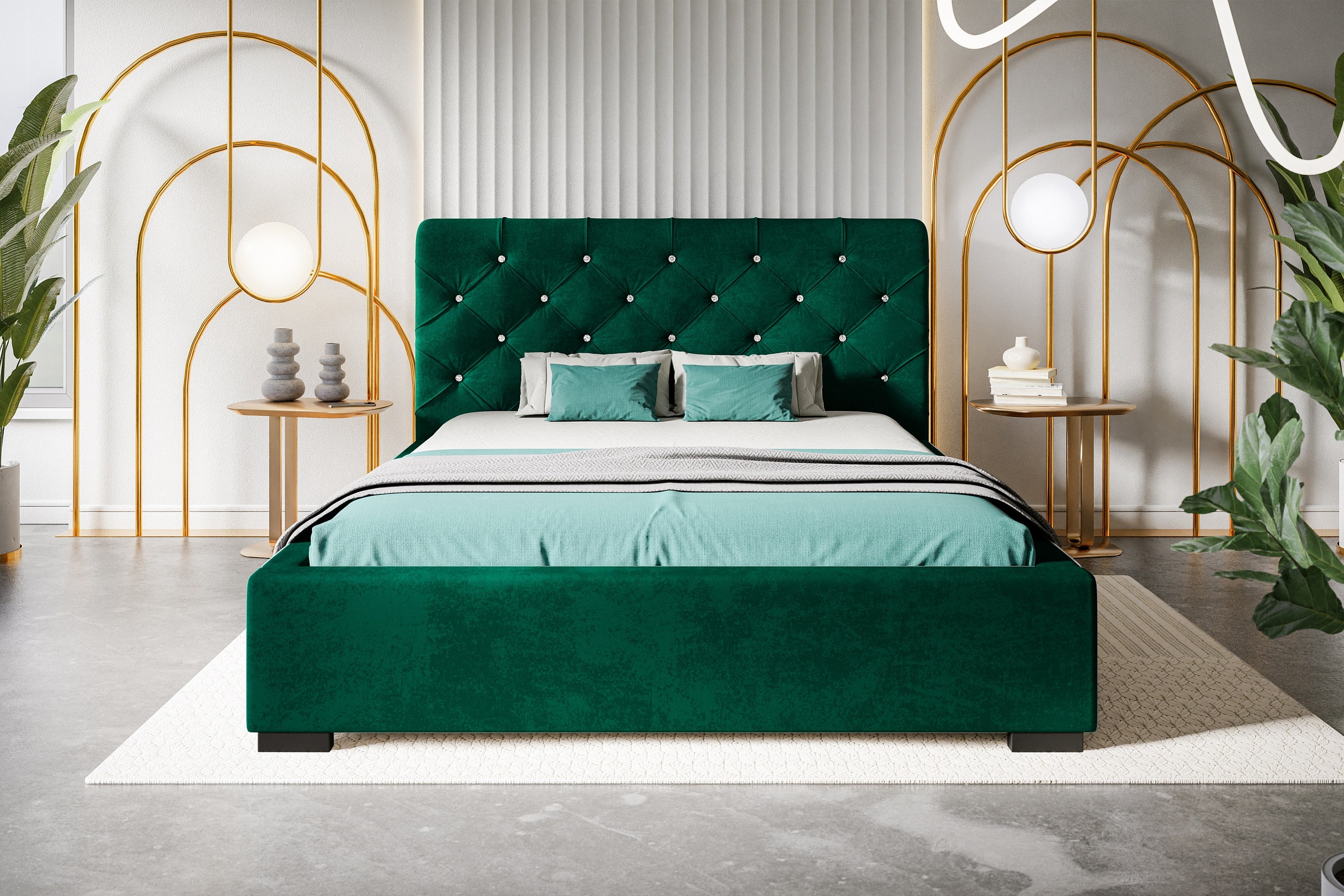 Lit rembourré Boston avec tête de lit, 160 x 200 cm, lit double avec coffre de rangement et sommier à lattes en bois, similicuir, couleur : blanc