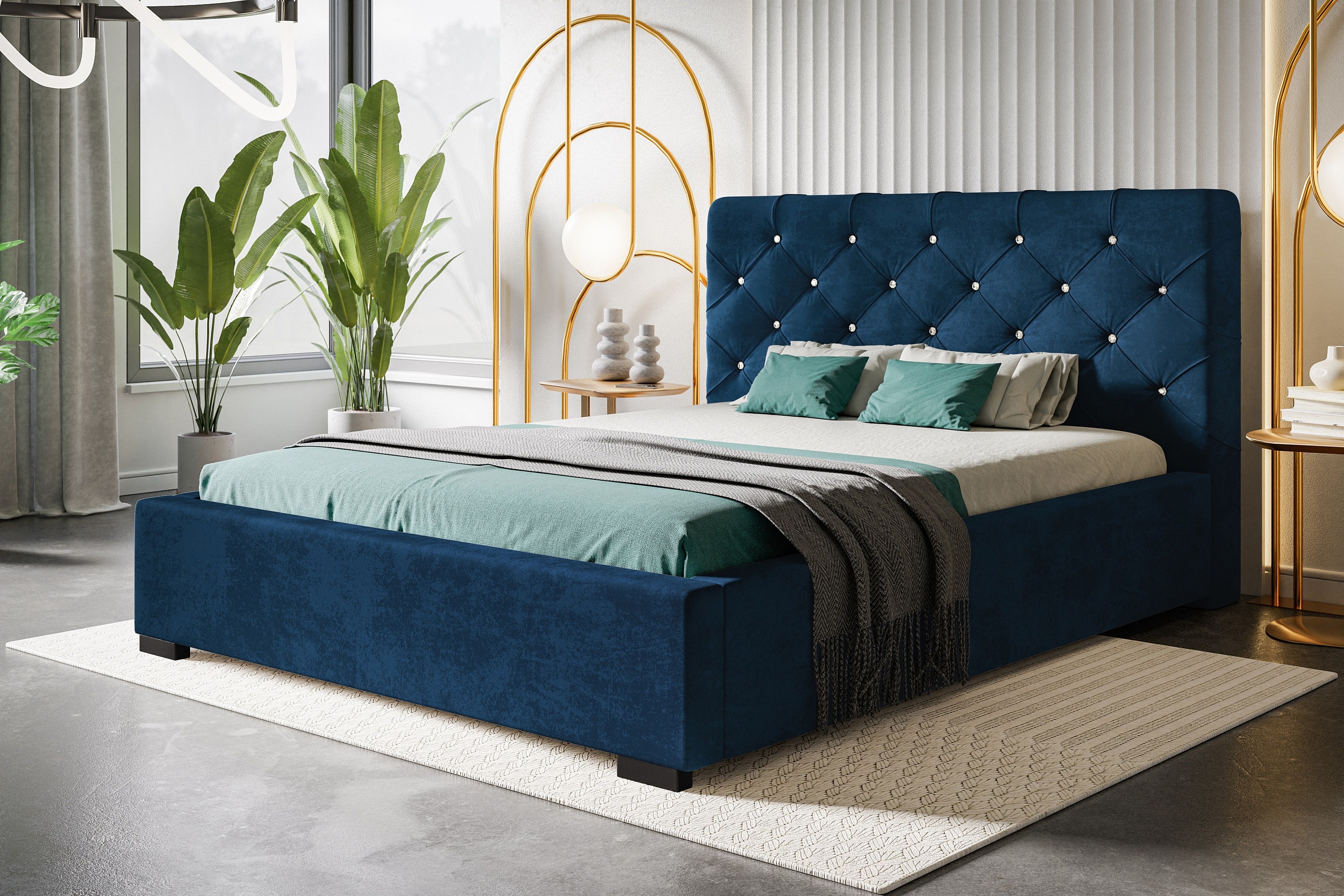 Lit rembourré Boston avec tête de lit, 160x200 cm, lit double avec coffre de rangement et sommier à lattes en bois, tissu velours, couleur : gris