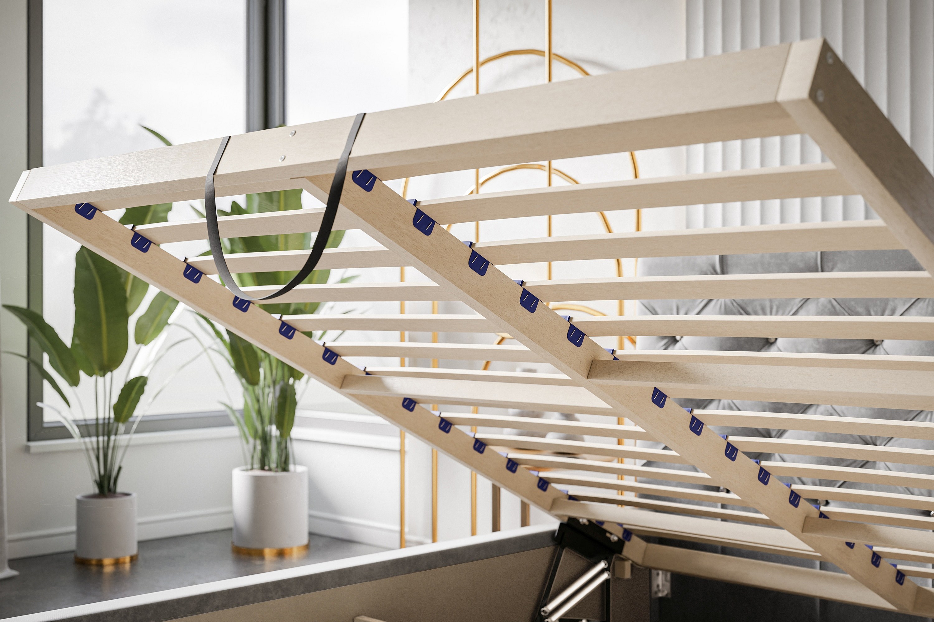 Lit rembourré Boston avec tête de lit, 180x200 cm, lit double avec coffre de rangement et sommier à lattes en bois, similicuir, couleur : blanc