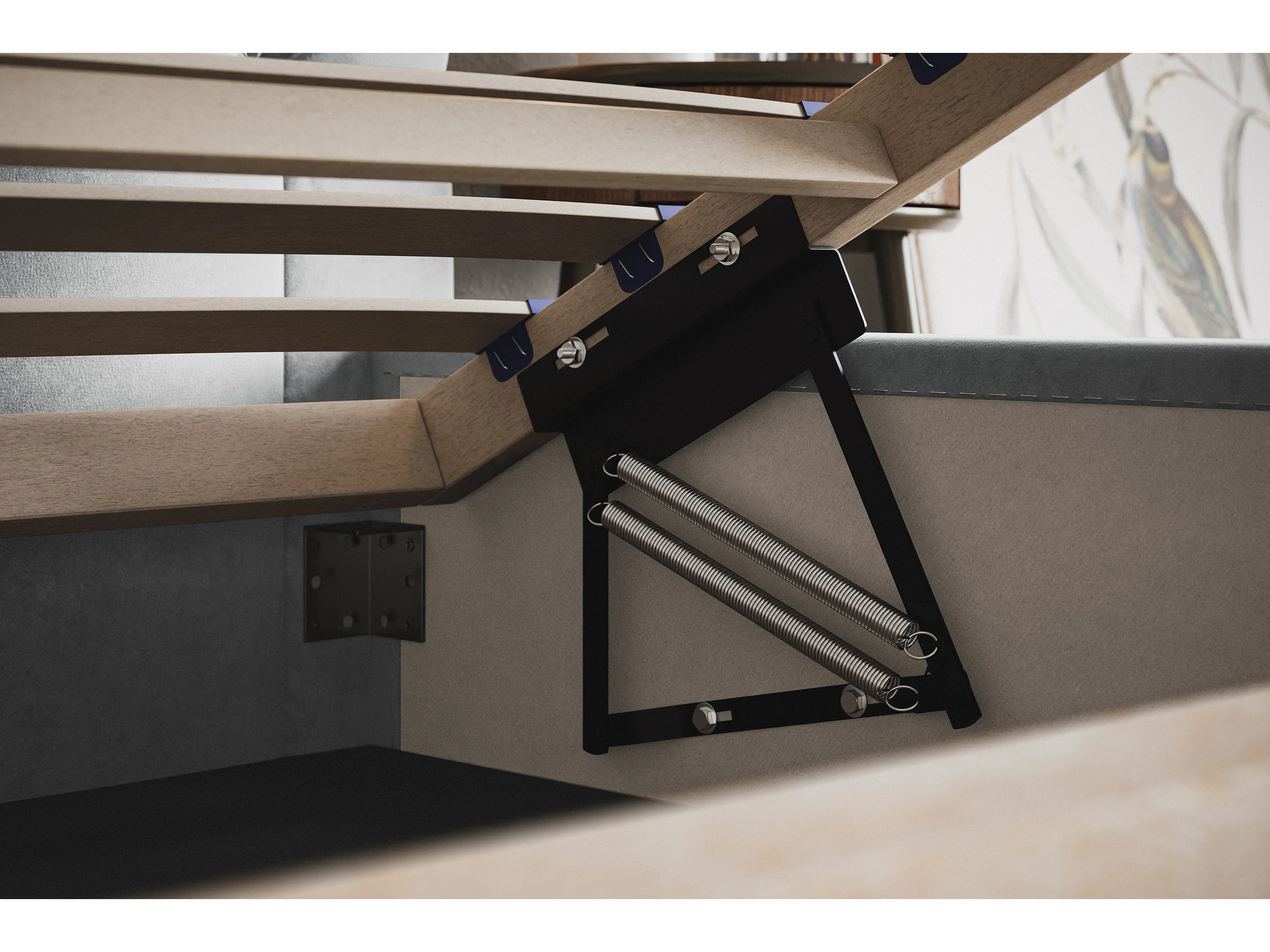 Lit rembourré BOSTON SLIM avec tête de lit, 120x200 cm, avec coffre de rangement et sommier à lattes en bois, couleur: gris, tissu velours