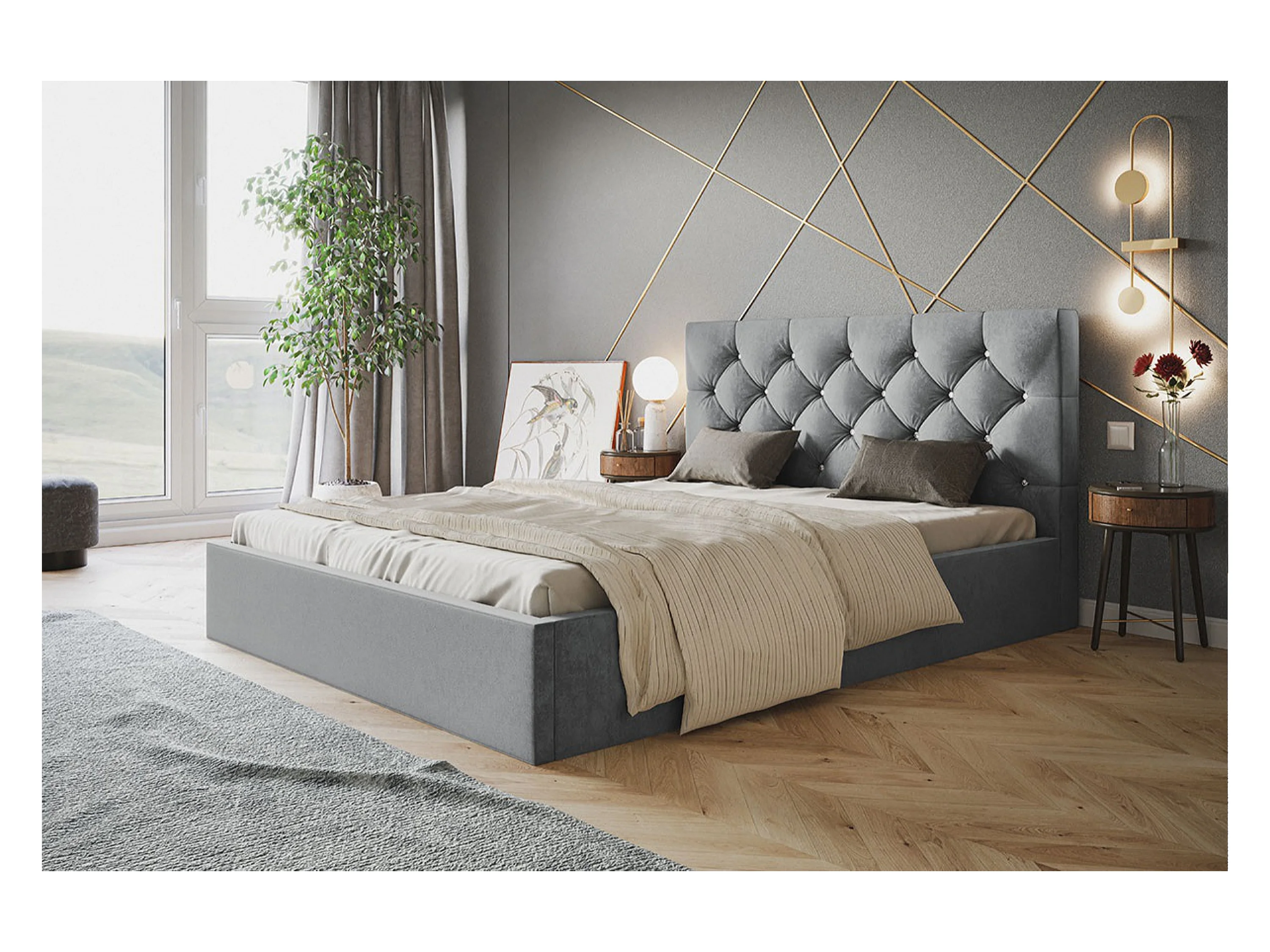 Lit rembourré BOSTON SLIM avec tête de lit, 140 x 200 cm, lit double avec coffre de rangement et sommier à lattes en bois, couleur : gris, tissu velours