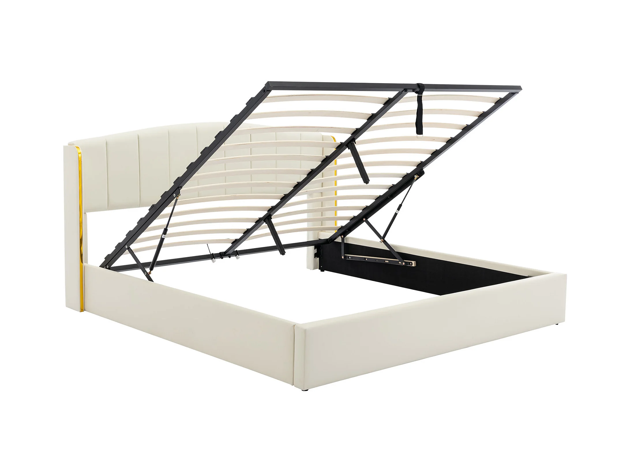 Lit rembourré crème 180 * 200, boîte de rangement, pu, avec cadre à lattes et tête de lit, sans matelas