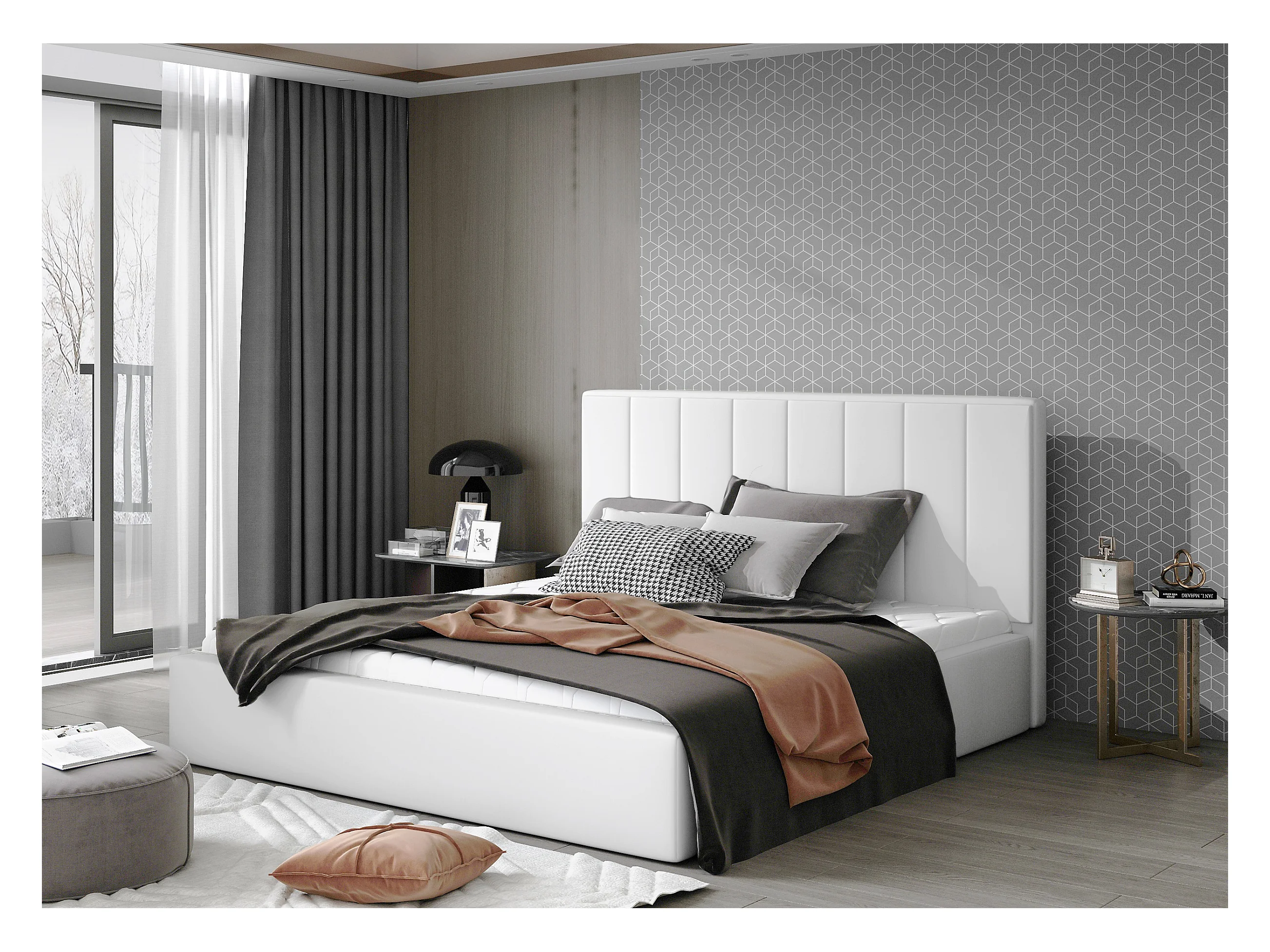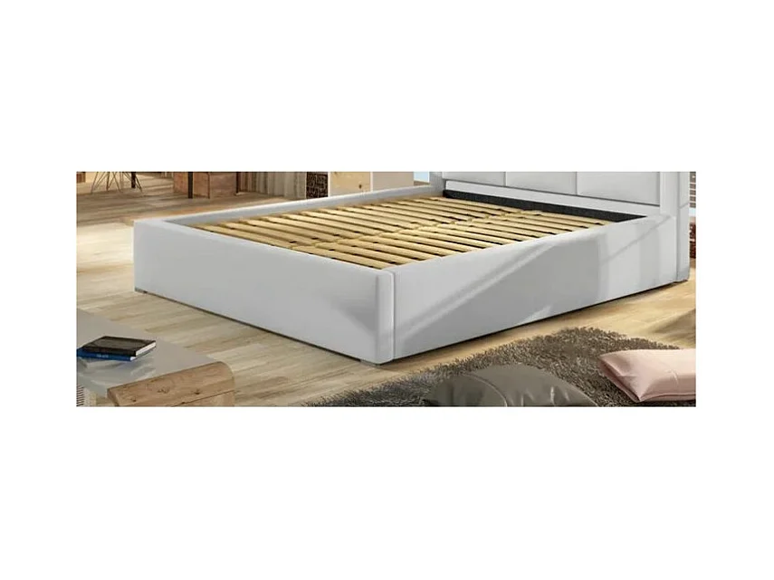 Lit rembourré de luxe cuir synthétique Vareze-Couleur Blanc-140x200-Version avec sommier